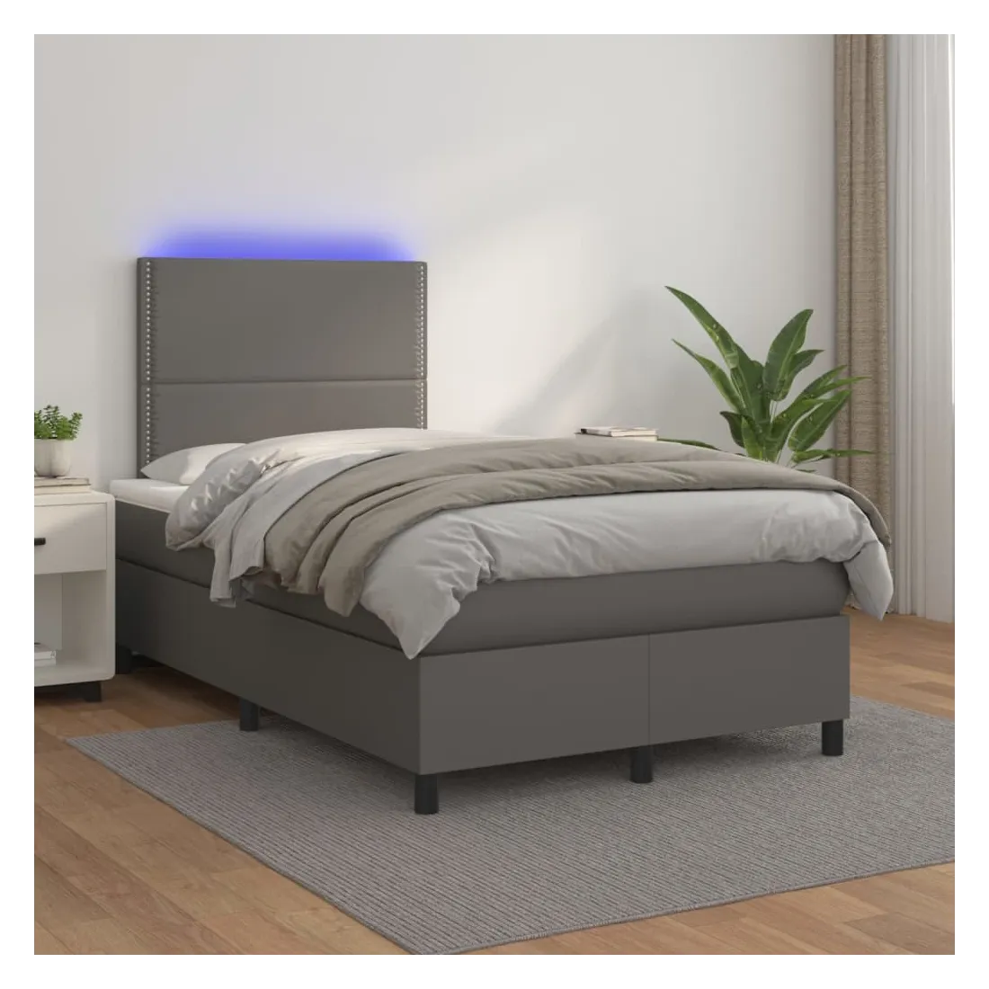 Sommier à lattes de lit avec matelas et LED Gris 120x200 cm