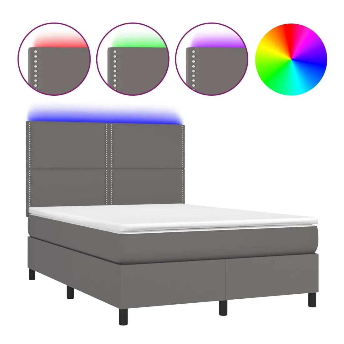Sommier à lattes de lit avec matelas et LED Gris 140x200 cm