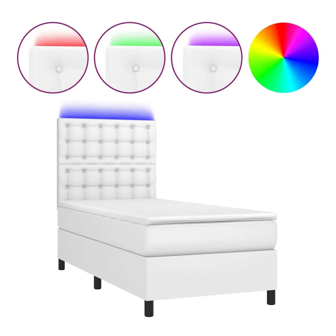 Utilisez ce sommier tapissier avec matelas et LED pour profiter d'un sommeil réparateur ! C'est le point central de votre chambre à coucher. Similicuir durable : le similicuir de qualité supérieure est un matériau très durable. Il est résistant aux taches, ce qui le rend facile à nettoyer avec un chiffon humide. La surface lisse donne également un aspect luxueux et la beauté du cuir véritable.Tête de lit pratique : la tête de lit est réglable en hauteur selon vos préférences. La tête de lit vous offre un excellent soutien du dos lorsque vous êtes assis dans votre lit pour lire ou regarder la télévision.Bande LED colorée : apportez de l'éclairage dans l'obscurité avec des lumières LED colorées !Matelas à ressorts ensachés : le ressort ensaché individuel intégré est connu pour sa très haute qualité tout en assurant un haut niveau de durabilité et d'adaptabilité. Il peut absorber efficacement le bruit et les chocs causés par les sauts et les rotations.Protège-matelas doux pour la peau : le protège-matelas est recouvert d'un tissu résistant et doux pour la peau, ce qui le rend souple et confortable. Remarque :Pour des raisons d'hygiène, le matelas ne peut pas être retourné si l'emballage est retiré ou ouvert.Seule la partie avec un symbole de ciseaux peut être coupée et seule la partie avec l'USB continuera à fonctionner comme avant.Chaque produit est livré avec un manuel de montage dans la boîte pour un montage facile.Ce produit est doté d'un connecteur USB, mais la source d'alimentation certifiée de USB 5V n'est pas incluse.