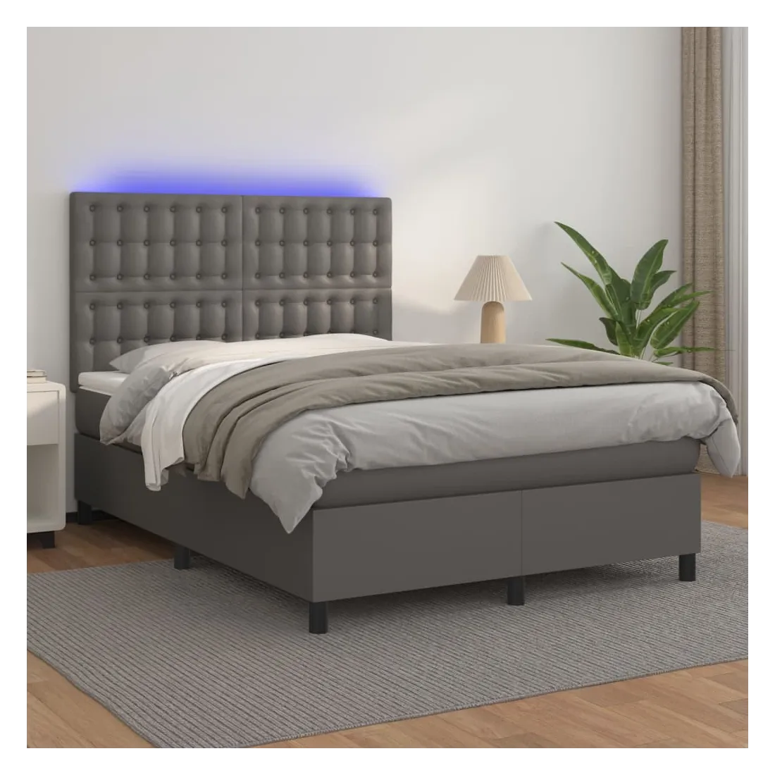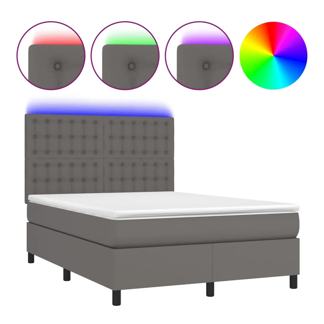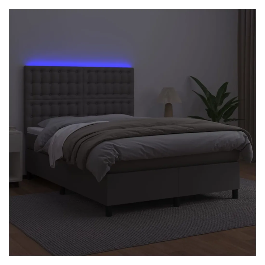 Sommier à lattes de lit avec matelas et LED Gris 140x200 cm