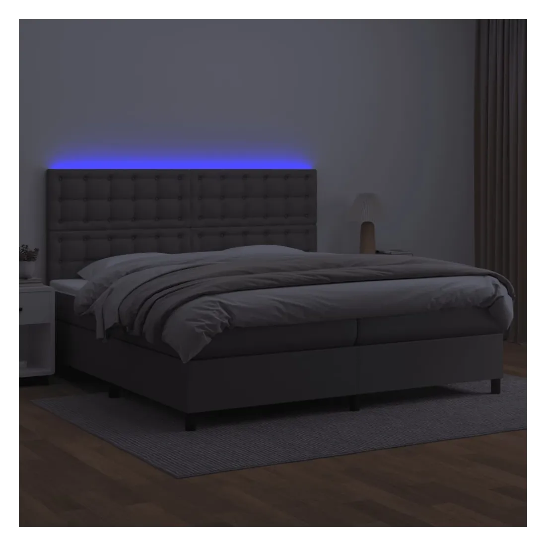 Utilisez ce sommier tapissier avec matelas et LED pour profiter d'un sommeil réparateur ! C'est le point central de votre chambre à coucher. Similicuir durable : le similicuir de qualité supérieure est un matériau très durable. Il est résistant aux taches, ce qui le rend facile à nettoyer avec un chiffon humide. La surface lisse donne également un aspect luxueux et la beauté du cuir véritable.Tête de lit pratique : la tête de lit est réglable en hauteur selon vos préférences. La tête de lit vous offre un excellent soutien du dos lorsque vous êtes assis dans votre lit pour lire ou regarder la télévision.Bande LED colorée : apportez de l'éclairage dans l'obscurité avec des lumières LED colorées !Matelas à ressorts ensachés : le ressort ensaché individuel intégré est connu pour sa très haute qualité tout en assurant un haut niveau de durabilité et d'adaptabilité. Il peut absorber efficacement le bruit et les chocs causés par les sauts et les rotations.Protège-matelas doux pour la peau : le protège-matelas est recouvert d'un tissu résistant et doux pour la peau, ce qui le rend souple et confortable. Remarque :Pour des raisons d'hygiène, le matelas ne peut pas être retourné si l'emballage est retiré ou ouvert.Seule la partie avec un symbole de ciseaux peut être coupée et seule la partie avec l'USB continuera à fonctionner comme avant.Chaque produit est livré avec un manuel de montage dans la boîte pour un montage facile.Ce produit est doté d'un connecteur USB, mais la source d'alimentation certifiée de USB 5V n'est pas incluse.