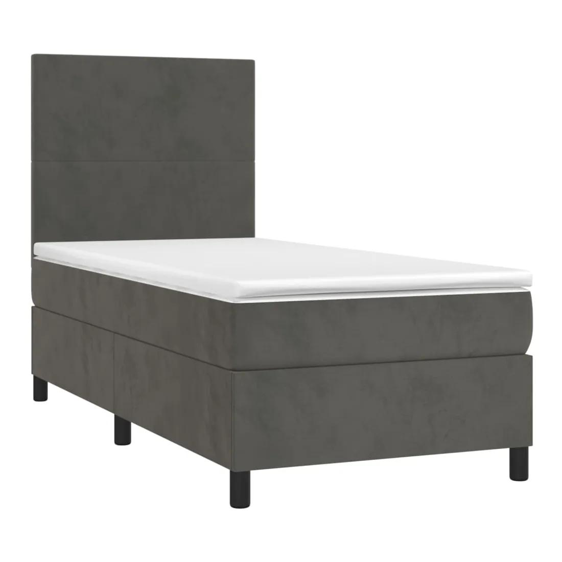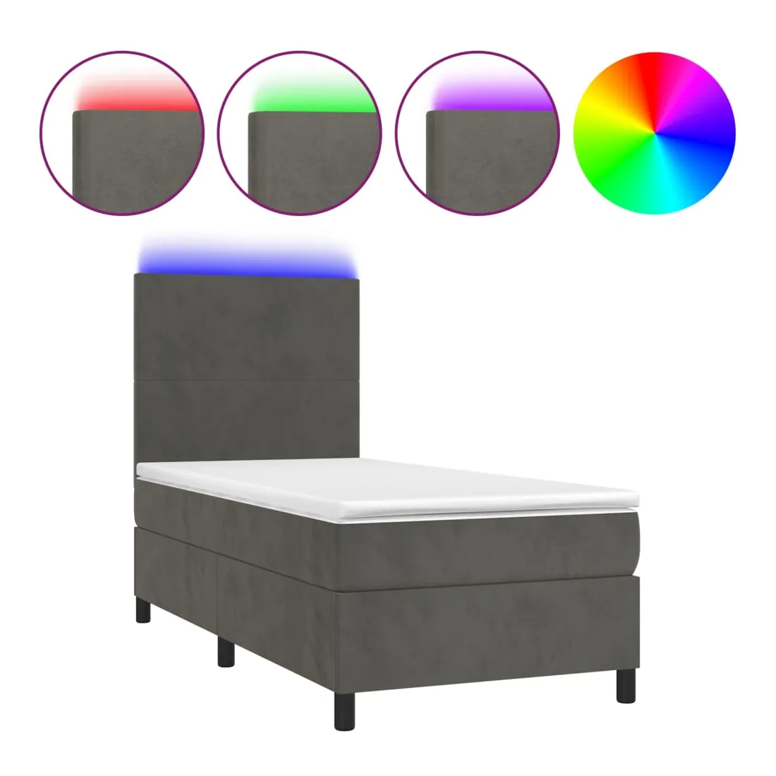 Sommier à lattes de lit avec matelas et LED Gris foncé 80x200cm