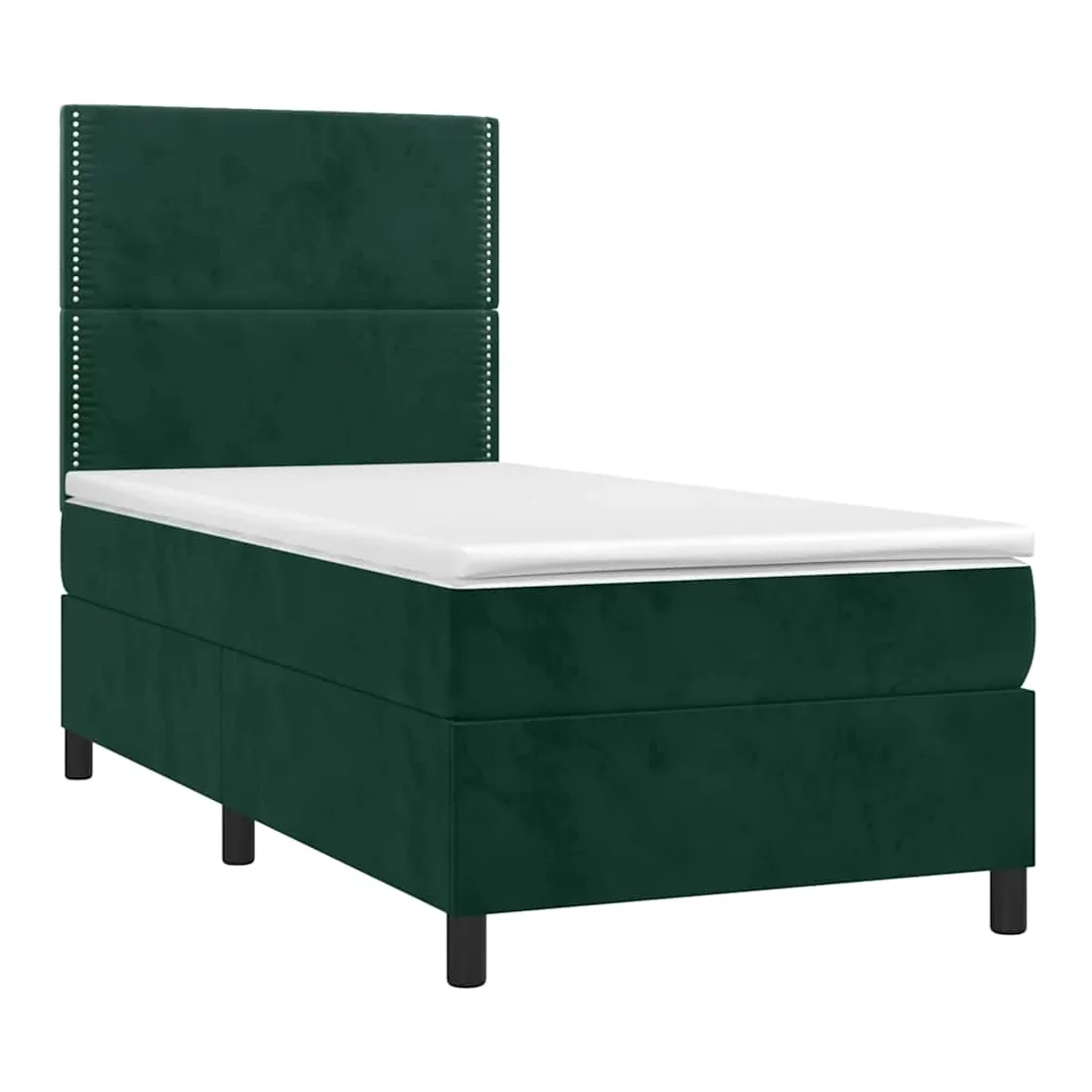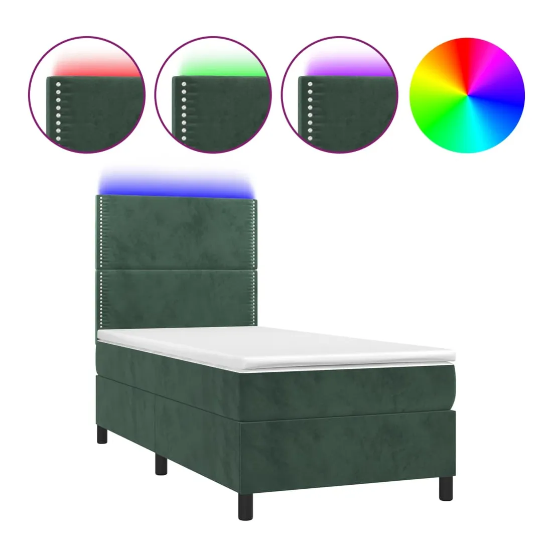 Sommier à lattes de lit avec matelas et LED Vert foncé 90x190cm