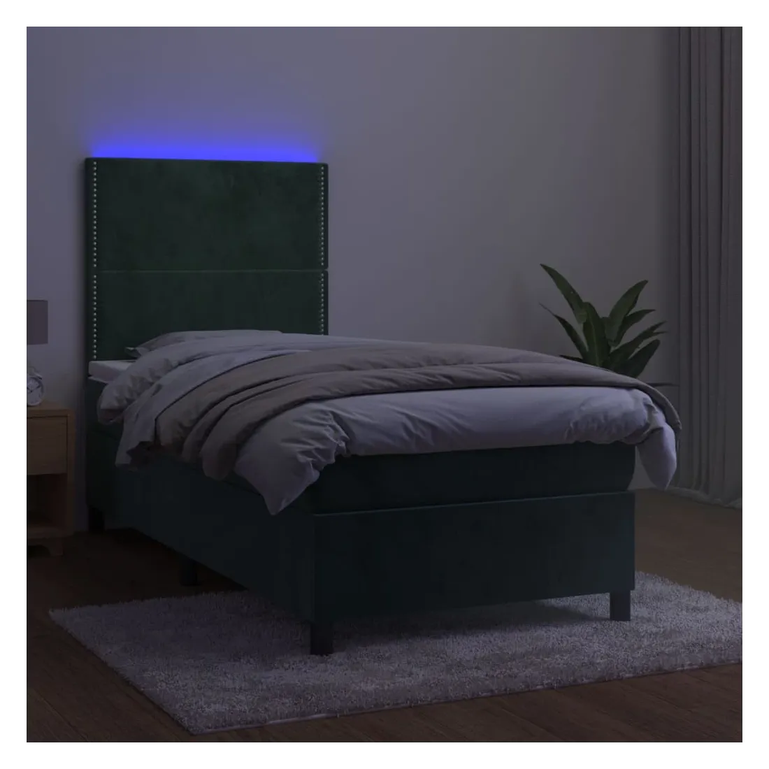Sommier à lattes de lit avec matelas et LED Vert foncé 90x200cm