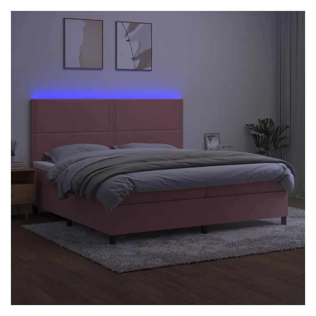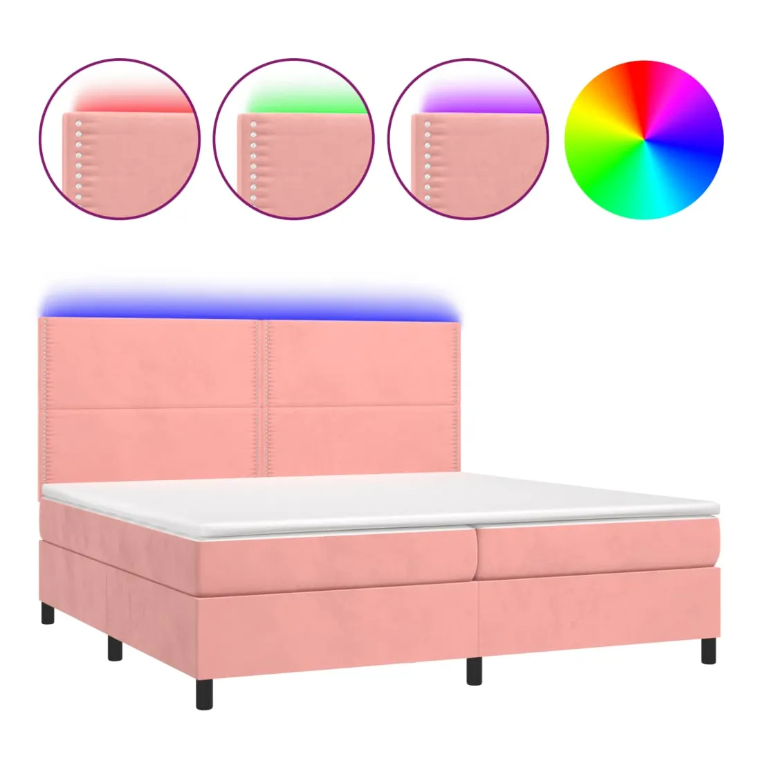Utilisez ce sommier tapissier avec matelas et LED pour profiter d'un sommeil réparateur ! C'est le point central de votre chambre à coucher. Velours doux : le velours est un tissu doux et luxueux qui se reconnaît à son tas dense de fibres uniformément coupées qui ont une touche lisse. Le tissu en velours présente un toucher doux distinctif, ce qui le rend confortable au toucher.Tête de lit pratique : la tête de lit est réglable en hauteur selon vos préférences. La tête de lit vous offre un excellent soutien du dos lorsque vous êtes assis dans votre lit pour lire ou regarder la télévision.Bande LED colorée : apportez de l'éclairage dans l'obscurité avec des lumières LED colorées !Matelas à ressorts ensachés : le ressort ensaché individuel intégré est connu pour sa très haute qualité tout en assurant un haut niveau de durabilité et d'adaptabilité. Il peut absorber efficacement le bruit et les chocs causés par les sauts et les rotations.Protège-matelas doux pour la peau : le protège-matelas est recouvert d'un tissu résistant et doux pour la peau, ce qui le rend souple et confortable. Remarque :Pour des raisons d'hygiène, le matelas ne peut pas être retourné si l'emballage est retiré ou ouvert.Seule la partie avec un symbole de ciseaux peut être coupée et seule la partie avec l'USB continuera à fonctionner comme avant.Chaque produit est livré avec un manuel de montage dans la boîte pour un montage facile.Ce produit est doté d'un connecteur USB, mais la source d'alimentation certifiée de USB 5V n'est pas incluse.