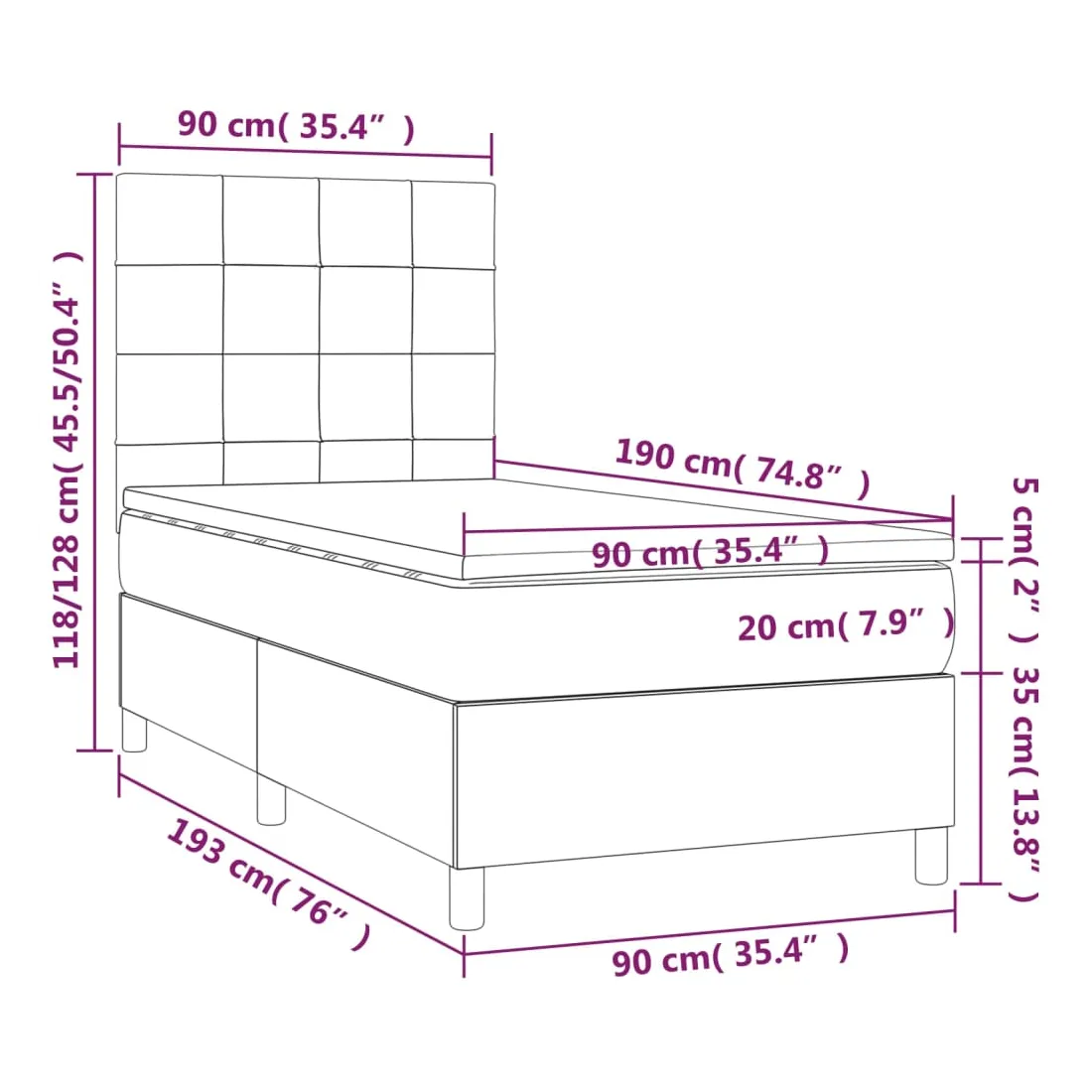 Utilisez ce sommier tapissier avec matelas et LED pour profiter d'un sommeil réparateur ! C'est le point central de votre chambre à coucher. Velours doux : le velours est un tissu doux et luxueux qui se reconnaît à son tas dense de fibres uniformément coupées qui ont une touche lisse. Le tissu en velours présente un toucher doux distinctif, ce qui le rend confortable au toucher.Tête de lit pratique : la tête de lit est réglable en hauteur selon vos préférences. La tête de lit vous offre un excellent soutien du dos lorsque vous êtes assis dans votre lit pour lire ou regarder la télévision.Bande LED colorée : apportez de l'éclairage dans l'obscurité avec des lumières LED colorées !Matelas à ressorts ensachés : le ressort ensaché individuel intégré est connu pour sa très haute qualité tout en assurant un haut niveau de durabilité et d'adaptabilité. Il peut absorber efficacement le bruit et les chocs causés par les sauts et les rotations.Protège-matelas doux pour la peau : le protège-matelas est recouvert d'un tissu résistant et doux pour la peau, ce qui le rend souple et confortable. Remarque :Pour des raisons d'hygiène, le matelas ne peut pas être retourné si l'emballage est retiré ou ouvert.Seule la partie avec un symbole de ciseaux peut être coupée et seule la partie avec l'USB continuera à fonctionner comme avant.Chaque produit est livré avec un manuel de montage dans la boîte pour un montage facile.Ce produit est doté d'un connecteur USB, mais la source d'alimentation certifiée de USB 5V n'est pas incluse.