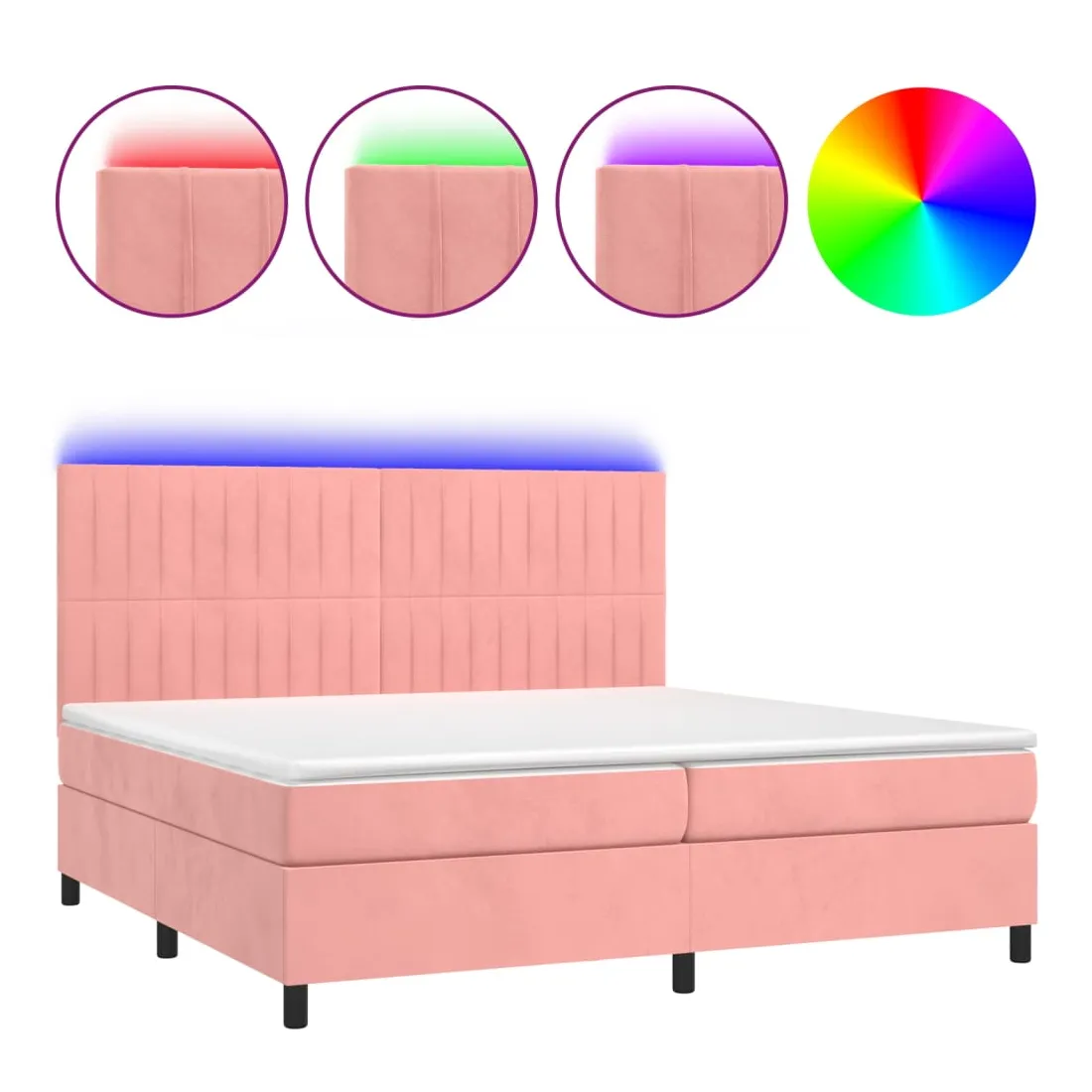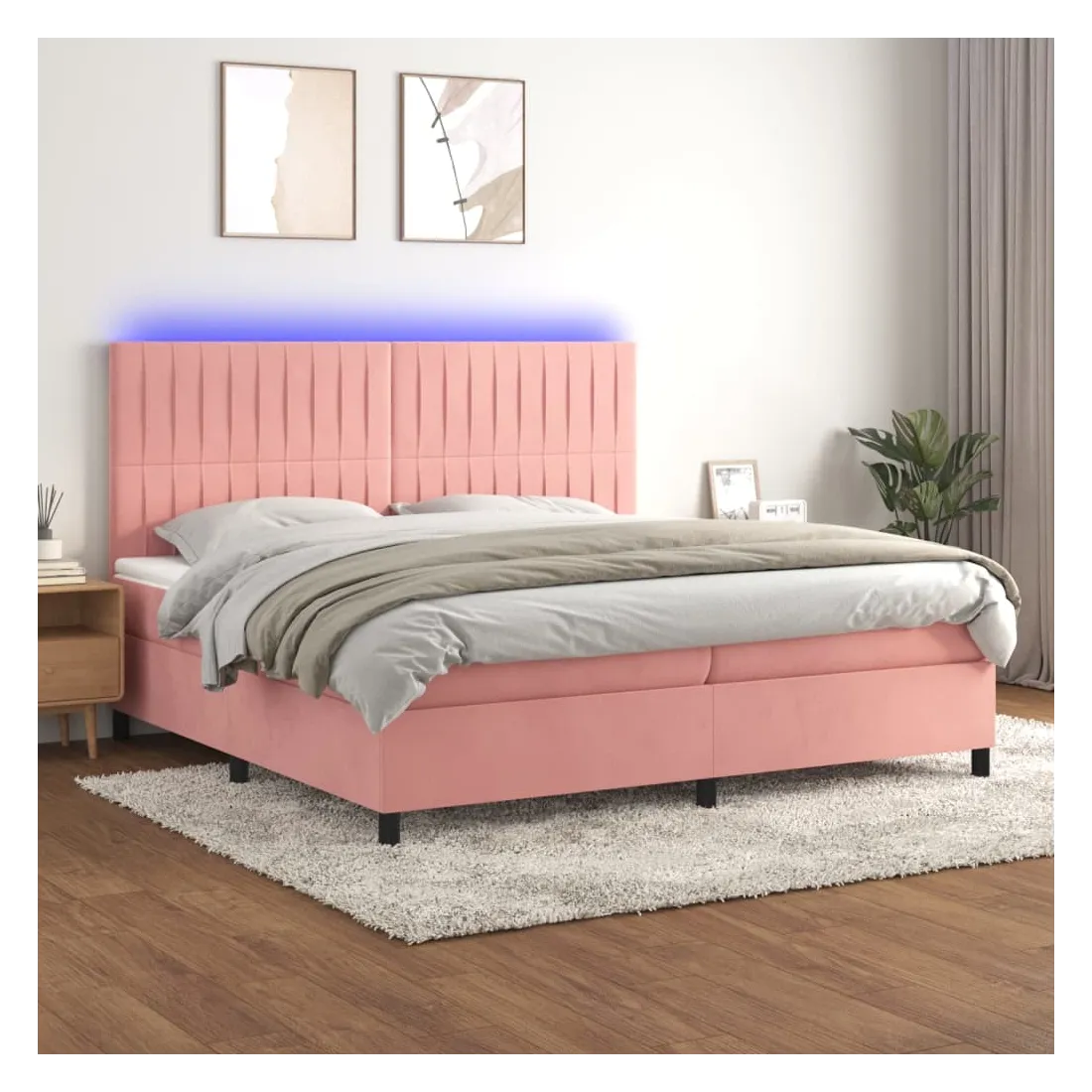 Sommier à lattes de lit matelas et LED Rose 200x200 cm Velours