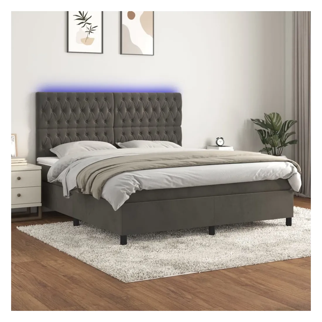 Sommier à lattes de lit matelas et LED Gris foncé 160x200 cm
