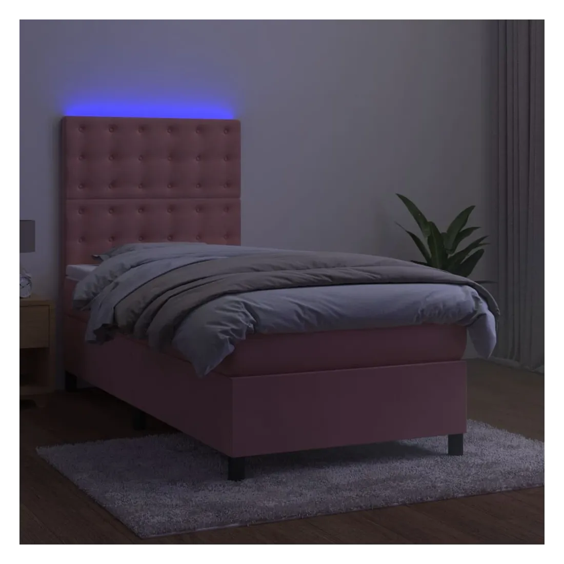 Utilisez ce sommier tapissier avec matelas et LED pour profiter d'un sommeil réparateur ! C'est le point central de votre chambre à coucher. Velours doux : le velours est un tissu doux et luxueux qui se reconnaît à son tas dense de fibres uniformément coupées qui ont une touche lisse. Le tissu en velours présente un toucher doux distinctif, ce qui le rend confortable au toucher.Tête de lit pratique : la tête de lit est réglable en hauteur selon vos préférences. La tête de lit vous offre un excellent soutien du dos lorsque vous êtes assis dans votre lit pour lire ou regarder la télévision.Bande LED colorée : apportez de l'éclairage dans l'obscurité avec des lumières LED colorées !Matelas à ressorts ensachés : le ressort ensaché individuel intégré est connu pour sa très haute qualité tout en assurant un haut niveau de durabilité et d'adaptabilité. Il peut absorber efficacement le bruit et les chocs causés par les sauts et les rotations.Protège-matelas doux pour la peau : le protège-matelas est recouvert d'un tissu résistant et doux pour la peau, ce qui le rend souple et confortable. Remarque :Pour des raisons d'hygiène, le matelas ne peut pas être retourné si l'emballage est retiré ou ouvert.Seule la partie avec un symbole de ciseaux peut être coupée et seule la partie avec l'USB continuera à fonctionner comme avant.Chaque produit est livré avec un manuel de montage dans la boîte pour un montage facile.Ce produit est doté d'un connecteur USB, mais la source d'alimentation certifiée de USB 5V n'est pas incluse.
