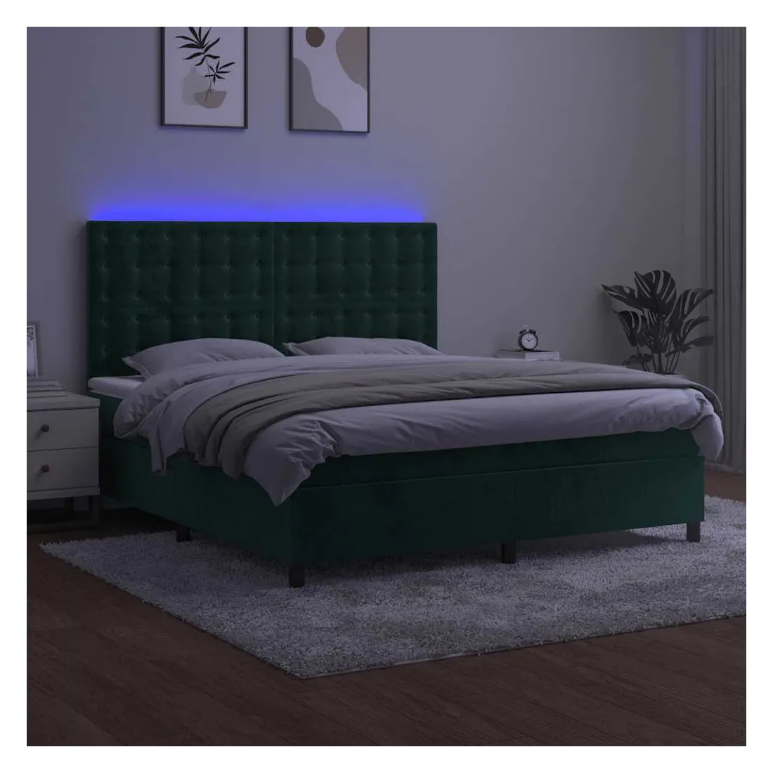 Utilisez ce sommier tapissier avec matelas et LED pour profiter d'un sommeil réparateur ! C'est le point central de votre chambre à coucher. Velours doux : le velours est un tissu doux et luxueux qui se reconnaît à son tas dense de fibres uniformément coupées qui ont une touche lisse. Le tissu en velours présente un toucher doux distinctif, ce qui le rend confortable au toucher.Tête de lit pratique : la tête de lit est réglable en hauteur selon vos préférences. La tête de lit vous offre un excellent soutien du dos lorsque vous êtes assis dans votre lit pour lire ou regarder la télévision.Bande LED colorée : apportez de l'éclairage dans l'obscurité avec des lumières LED colorées !Matelas à ressorts ensachés : le ressort ensaché individuel intégré est connu pour sa très haute qualité tout en assurant un haut niveau de durabilité et d'adaptabilité. Il peut absorber efficacement le bruit et les chocs causés par les sauts et les rotations.Protège-matelas doux pour la peau : le protège-matelas est recouvert d'un tissu résistant et doux pour la peau, ce qui le rend souple et confortable. Remarque :Pour des raisons d'hygiène, le matelas ne peut pas être retourné si l'emballage est retiré ou ouvert.Seule la partie avec un symbole de ciseaux peut être coupée et seule la partie avec l'USB continuera à fonctionner comme avant.Chaque produit est livré avec un manuel de montage dans la boîte pour un montage facile.Ce produit est doté d'un connecteur USB, mais la source d'alimentation certifiée de USB 5V n'est pas incluse.