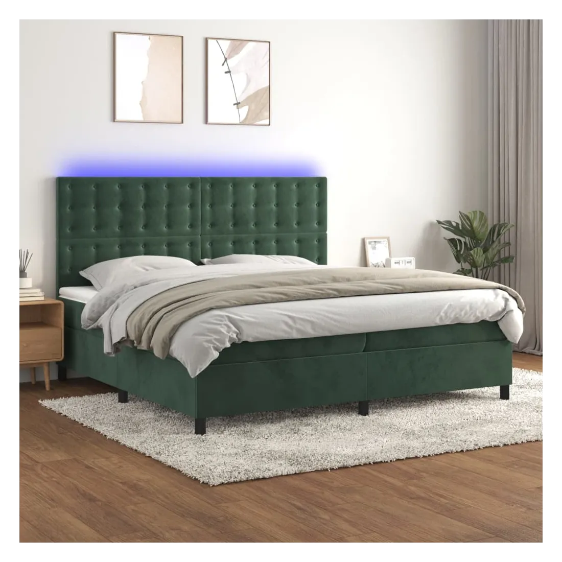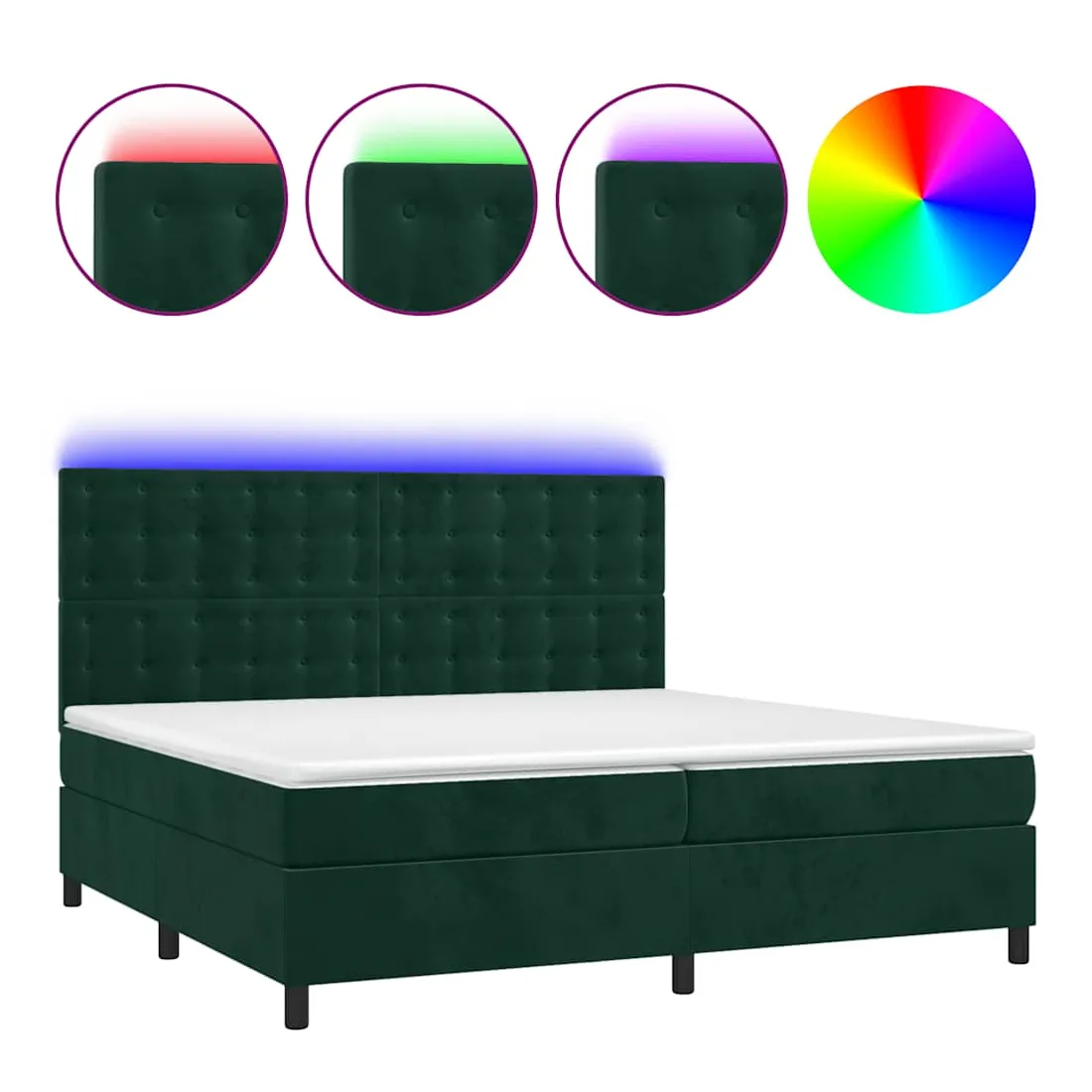 Utilisez ce sommier tapissier avec matelas et LED pour profiter d'un sommeil réparateur ! C'est le point central de votre chambre à coucher. Velours doux : le velours est un tissu doux et luxueux qui se reconnaît à son tas dense de fibres uniformément coupées qui ont une touche lisse. Le tissu en velours présente un toucher doux distinctif, ce qui le rend confortable au toucher.Tête de lit pratique : la tête de lit est réglable en hauteur selon vos préférences. La tête de lit vous offre un excellent soutien du dos lorsque vous êtes assis dans votre lit pour lire ou regarder la télévision.Bande LED colorée : apportez de l'éclairage dans l'obscurité avec des lumières LED colorées !Matelas à ressorts ensachés : le ressort ensaché individuel intégré est connu pour sa très haute qualité tout en assurant un haut niveau de durabilité et d'adaptabilité. Il peut absorber efficacement le bruit et les chocs causés par les sauts et les rotations.Protège-matelas doux pour la peau : le protège-matelas est recouvert d'un tissu résistant et doux pour la peau, ce qui le rend souple et confortable. Remarque :Pour des raisons d'hygiène, le matelas ne peut pas être retourné si l'emballage est retiré ou ouvert.Seule la partie avec un symbole de ciseaux peut être coupée et seule la partie avec l'USB continuera à fonctionner comme avant.Chaque produit est livré avec un manuel de montage dans la boîte pour un montage facile.Ce produit est doté d'un connecteur USB, mais la source d'alimentation certifiée de USB 5V n'est pas incluse.