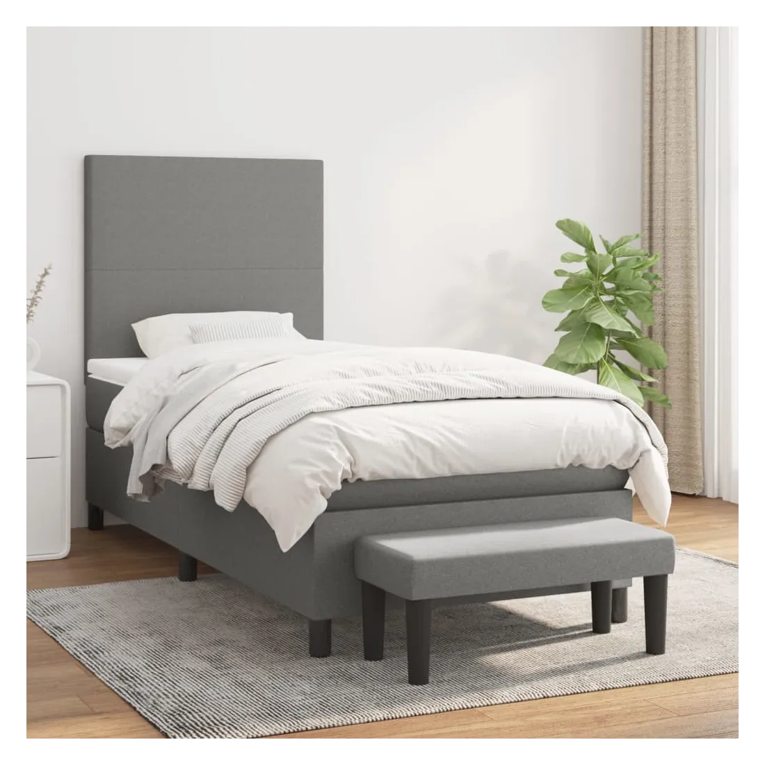 Utilisez ce lit à sommier pour profiter d'une nuit de sommeil réparatrice ! Il vous offre une relaxation maximale et un sommeil agréable. Tissu durable : le tissu présente un aspect simple et épuré, et il est respirant et durable.Tête de lit pratique : la tête de lit est réglable en hauteur selon vos préférences. La tête de lit vous offre un excellent soutien du dos lorsque vous êtes assis dans votre lit pour lire ou regarder la télévision.Matelas à ressorts ensachés : le ressort ensaché individuel intégré est connu pour sa très haute qualité tout en assurant un haut niveau de durabilité et d'adaptabilité. Il peut absorber efficacement le bruit et les chocs causés par les sauts et les rotations.Support moyen-dur : ce matelas de lit offre une stabilité accrue et juste le niveau de fermeté sans sacrifier le confort. Il est donc idéal pour les personnes qui dorment sur le dos ou sur le ventre.Protège-matelas doux pour la peau : le protège-matelas est recouvert d'un tissu résistant et doux pour la peau, ce qui le rend souple et confortable.Banc multifonctionnel : ce banc peut servir de siège supplémentaire dans votre maison. Il peut également être utilisé comme banc de bout de lit. Remarque :Pour des raisons d'hygiène, le matelas ne peut pas être retourné si l'emballage est retiré ou ouvert.Chaque produit est livré avec un manuel de montage dans la boîte pour un montage facile.
