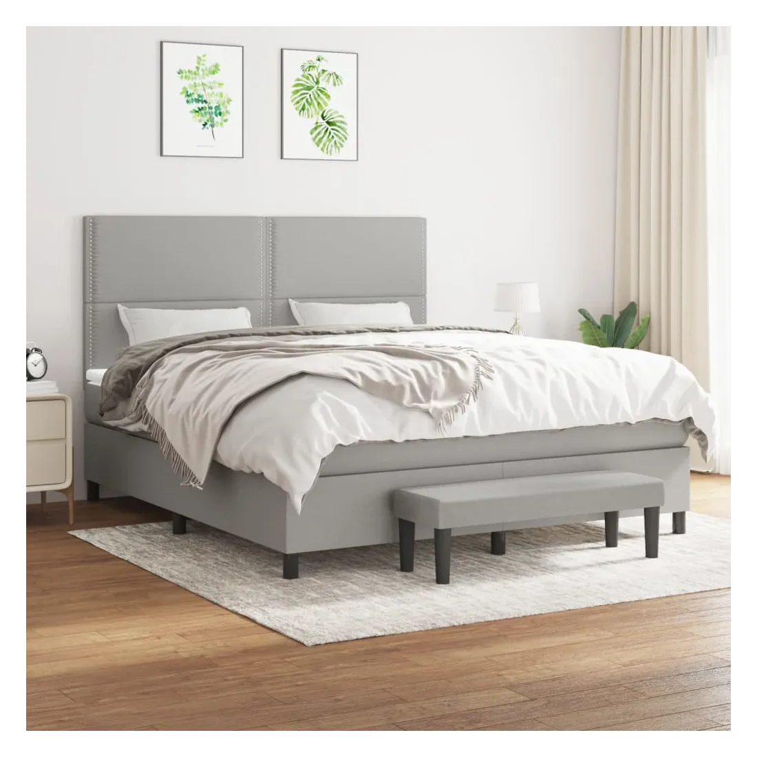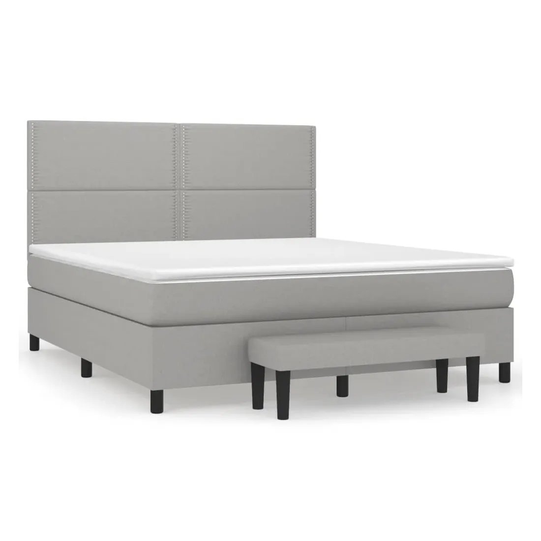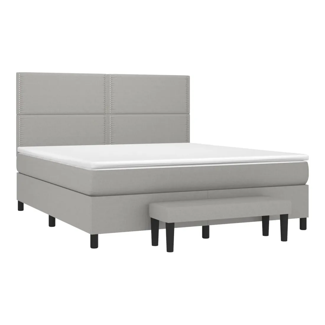 Utilisez ce lit à sommier pour profiter d'une nuit de sommeil réparatrice ! Il vous offre une relaxation maximale et un sommeil agréable. Tissu durable : le tissu présente un aspect simple et épuré, et il est respirant et durable.Tête de lit pratique : la tête de lit est réglable en hauteur selon vos préférences. La tête de lit vous offre un excellent soutien du dos lorsque vous êtes assis dans votre lit pour lire ou regarder la télévision.Matelas à ressorts ensachés : le ressort ensaché individuel intégré est connu pour sa très haute qualité tout en assurant un haut niveau de durabilité et d'adaptabilité. Il peut absorber efficacement le bruit et les chocs causés par les sauts et les rotations.Support moyen-dur : ce matelas de lit offre une stabilité accrue et juste le niveau de fermeté sans sacrifier le confort. Il est donc idéal pour les personnes qui dorment sur le dos ou sur le ventre.Protège-matelas doux pour la peau : le protège-matelas est recouvert d'un tissu résistant et doux pour la peau, ce qui le rend souple et confortable.Banc multifonctionnel : ce banc peut servir de siège supplémentaire dans votre maison. Il peut également être utilisé comme banc de bout de lit. Remarque :Pour des raisons d'hygiène, le matelas ne peut pas être retourné si l'emballage est retiré ou ouvert.Chaque produit est livré avec un manuel de montage dans la boîte pour un montage facile.