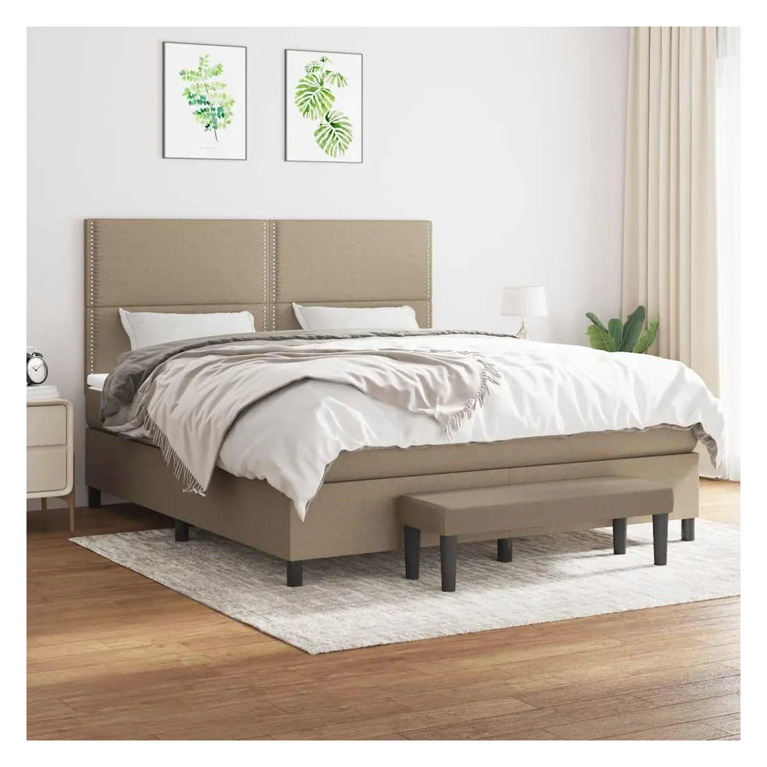 Utilisez ce lit à sommier pour profiter d'une nuit de sommeil réparatrice ! Il vous offre une relaxation maximale et un sommeil agréable. Tissu durable : le tissu présente un aspect simple et épuré, et il est respirant et durable.Tête de lit pratique : la tête de lit est réglable en hauteur selon vos préférences. La tête de lit vous offre un excellent soutien du dos lorsque vous êtes assis dans votre lit pour lire ou regarder la télévision.Matelas à ressorts ensachés : le ressort ensaché individuel intégré est connu pour sa très haute qualité tout en assurant un haut niveau de durabilité et d'adaptabilité. Il peut absorber efficacement le bruit et les chocs causés par les sauts et les rotations.Support moyen-dur : ce matelas de lit offre une stabilité accrue et juste le niveau de fermeté sans sacrifier le confort. Il est donc idéal pour les personnes qui dorment sur le dos ou sur le ventre.Protège-matelas doux pour la peau : le protège-matelas est recouvert d'un tissu résistant et doux pour la peau, ce qui le rend souple et confortable.Banc multifonctionnel : ce banc peut servir de siège supplémentaire dans votre maison. Il peut également être utilisé comme banc de bout de lit. Remarque :Pour des raisons d'hygiène, le matelas ne peut pas être retourné si l'emballage est retiré ou ouvert.Chaque produit est livré avec un manuel de montage dans la boîte pour un montage facile.
