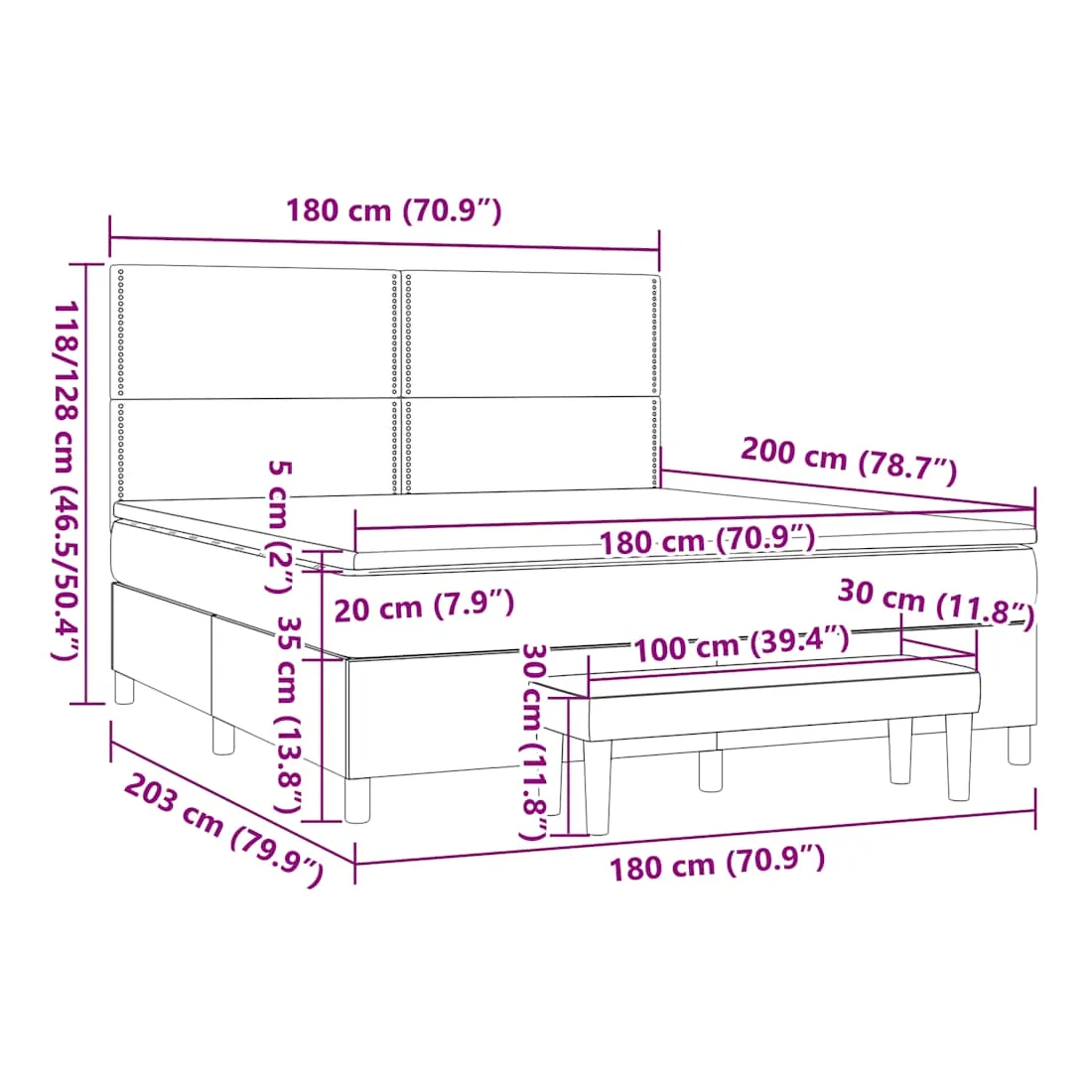 • Dimensions: 203 x 180 x 118/128 cm (L x l x H)