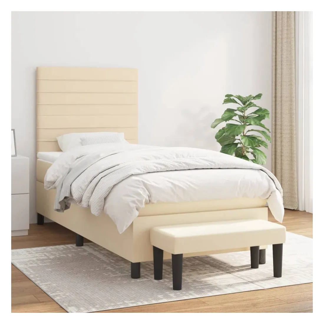 Sommier à lattes de lit avec matelas Crème 90x200 cm Tissu