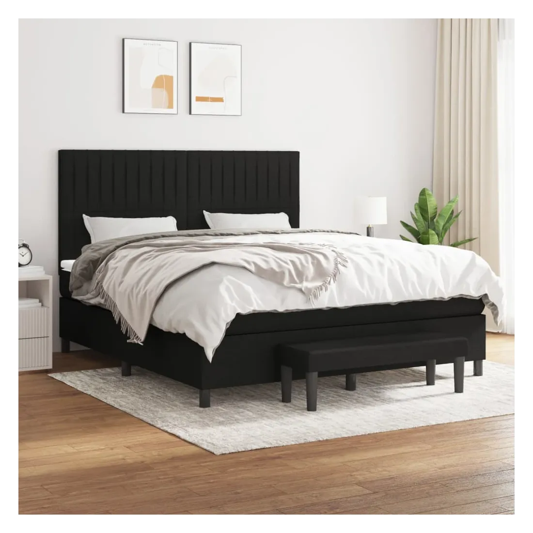Sommier à lattes de lit avec matelas Noir 160x200 cm Tissu