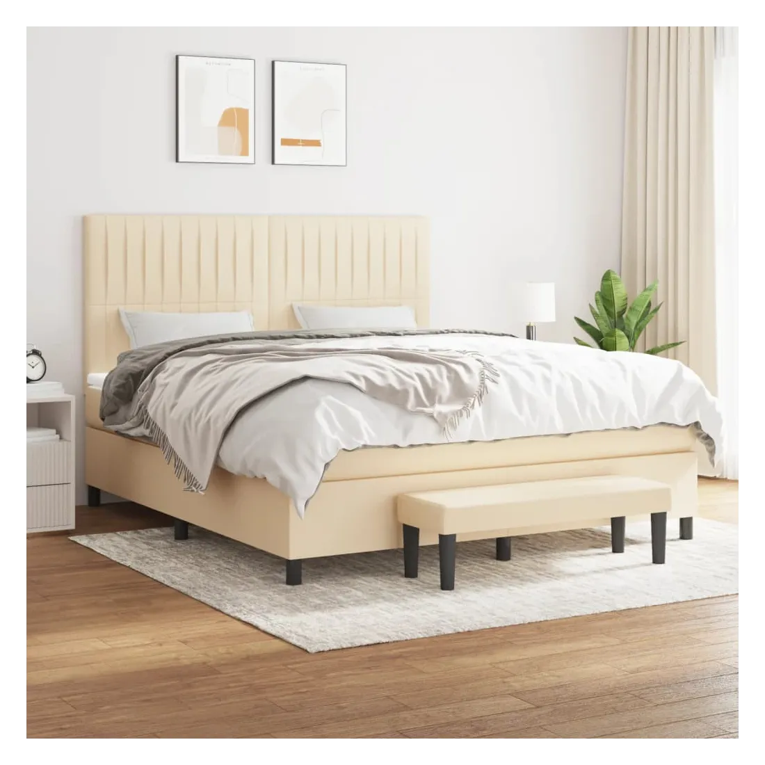 Sommier à lattes de lit avec matelas Crème 180x200 cm Tissu