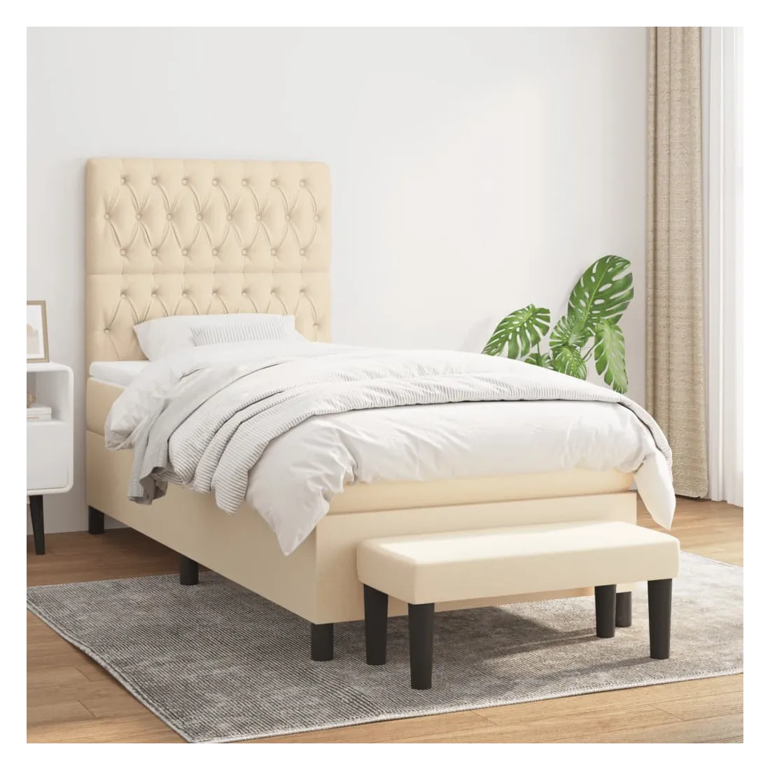 Sommier à lattes de lit et matelas Crème 90x190 cm Tissu