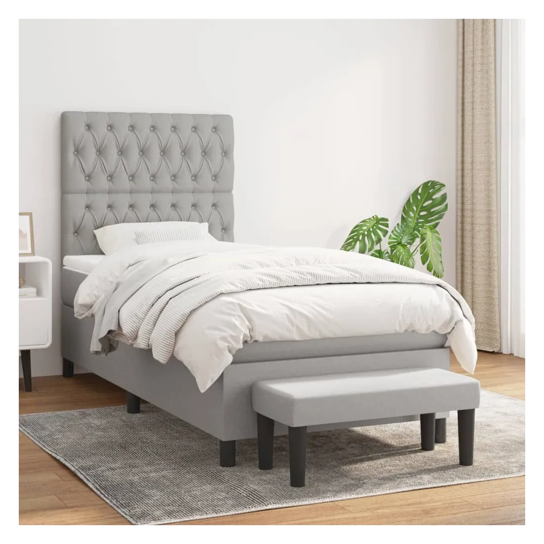 Sommier à lattes de lit avec matelas Gris clair 90x200 cm Tissu