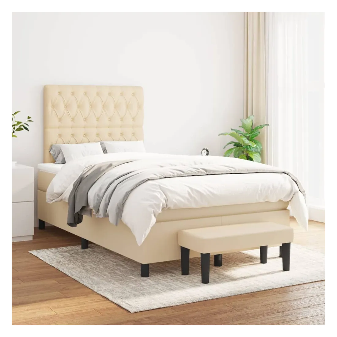 Sommier à lattes de lit avec matelas Crème 120x200 cm Tissu