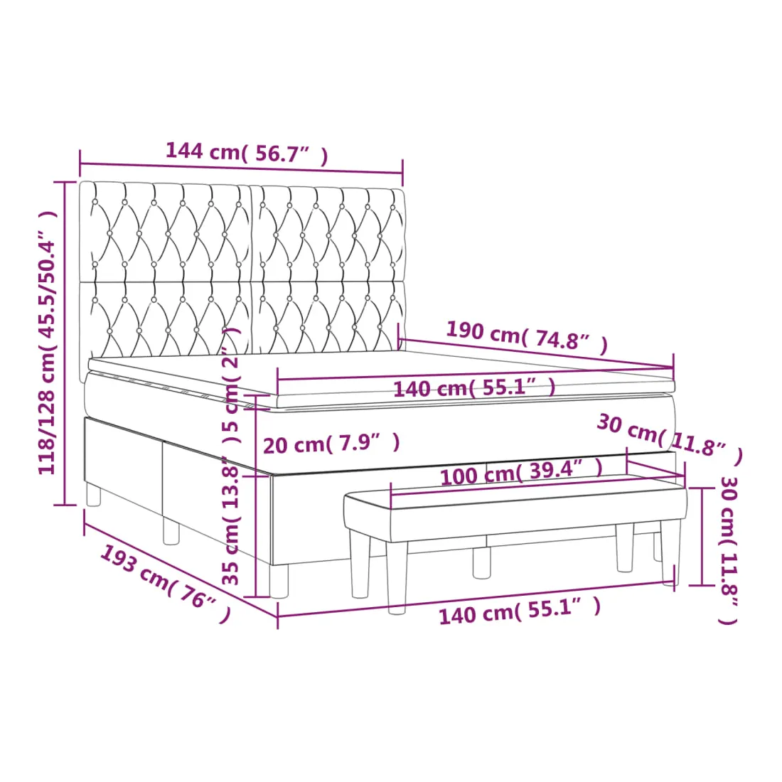 Utilisez ce lit à sommier pour profiter d'une nuit de sommeil réparatrice ! Il vous offre une relaxation maximale et un sommeil agréable. Tissu durable : le tissu présente un aspect simple et épuré, et il est respirant et durable.Tête de lit pratique : la tête de lit est réglable en hauteur selon vos préférences. La tête de lit vous offre un excellent soutien du dos lorsque vous êtes assis dans votre lit pour lire ou regarder la télévision.Matelas à ressorts ensachés : le ressort ensaché individuel intégré est connu pour sa très haute qualité tout en assurant un haut niveau de durabilité et d'adaptabilité. Il peut absorber efficacement le bruit et les chocs causés par les sauts et les rotations.Support moyen-dur : ce matelas de lit offre une stabilité accrue et juste le niveau de fermeté sans sacrifier le confort. Il est donc idéal pour les personnes qui dorment sur le dos ou sur le ventre.Protège-matelas doux pour la peau : le protège-matelas est recouvert d'un tissu résistant et doux pour la peau, ce qui le rend souple et confortable.Banc multifonctionnel : ce banc peut servir de siège supplémentaire dans votre maison. Il peut également être utilisé comme banc de bout de lit. Remarque :Pour des raisons d'hygiène, le matelas ne peut pas être retourné si l'emballage est retiré ou ouvert.Chaque produit est livré avec un manuel de montage dans la boîte pour un montage facile.