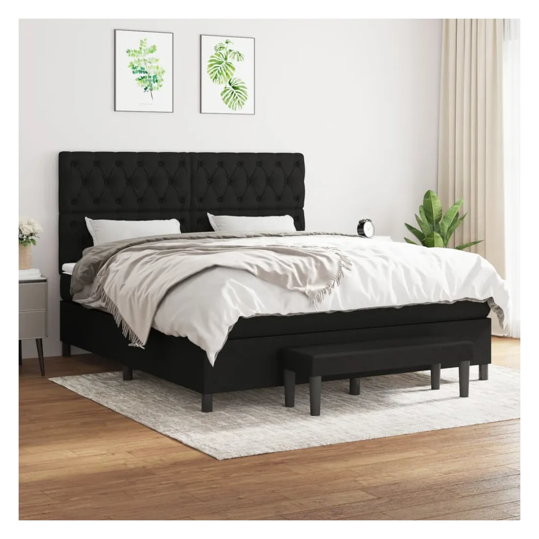 Sommier à lattes de lit avec matelas Noir 160x200 cm Tissu