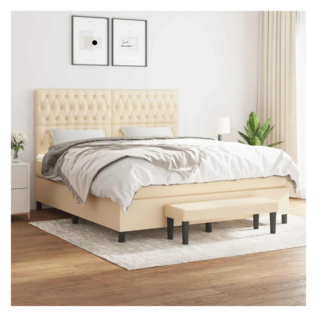 Sommier à lattes de lit avec matelas Crème 180x200 cm Tissu