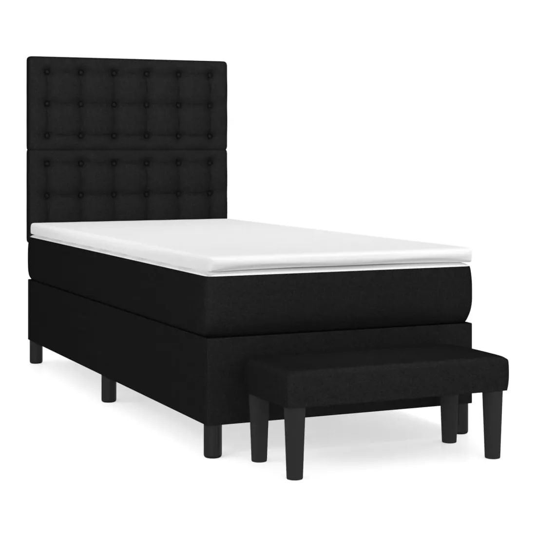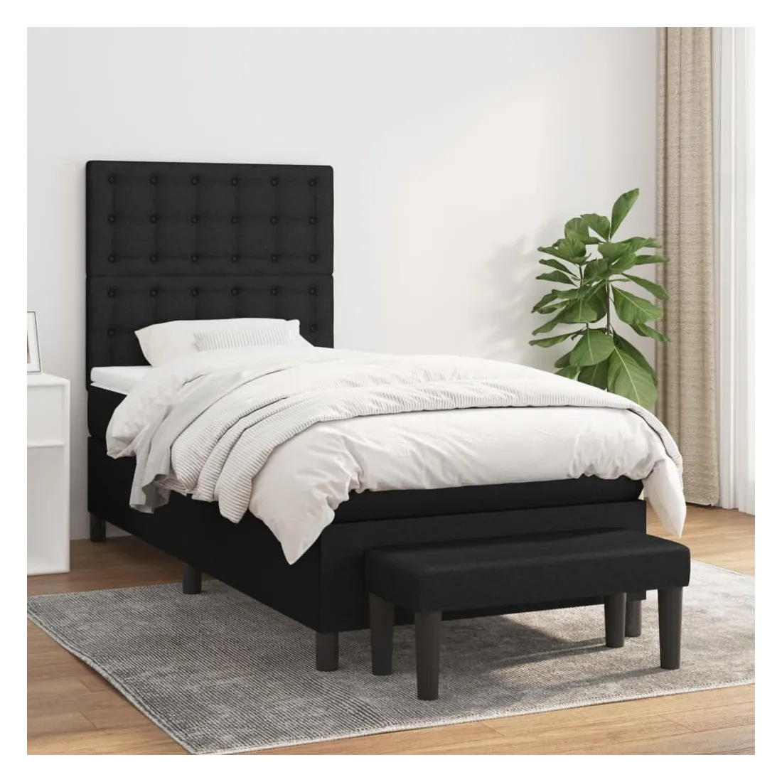 Sommier à lattes de lit avec matelas Noir 90x190 cm Tissu