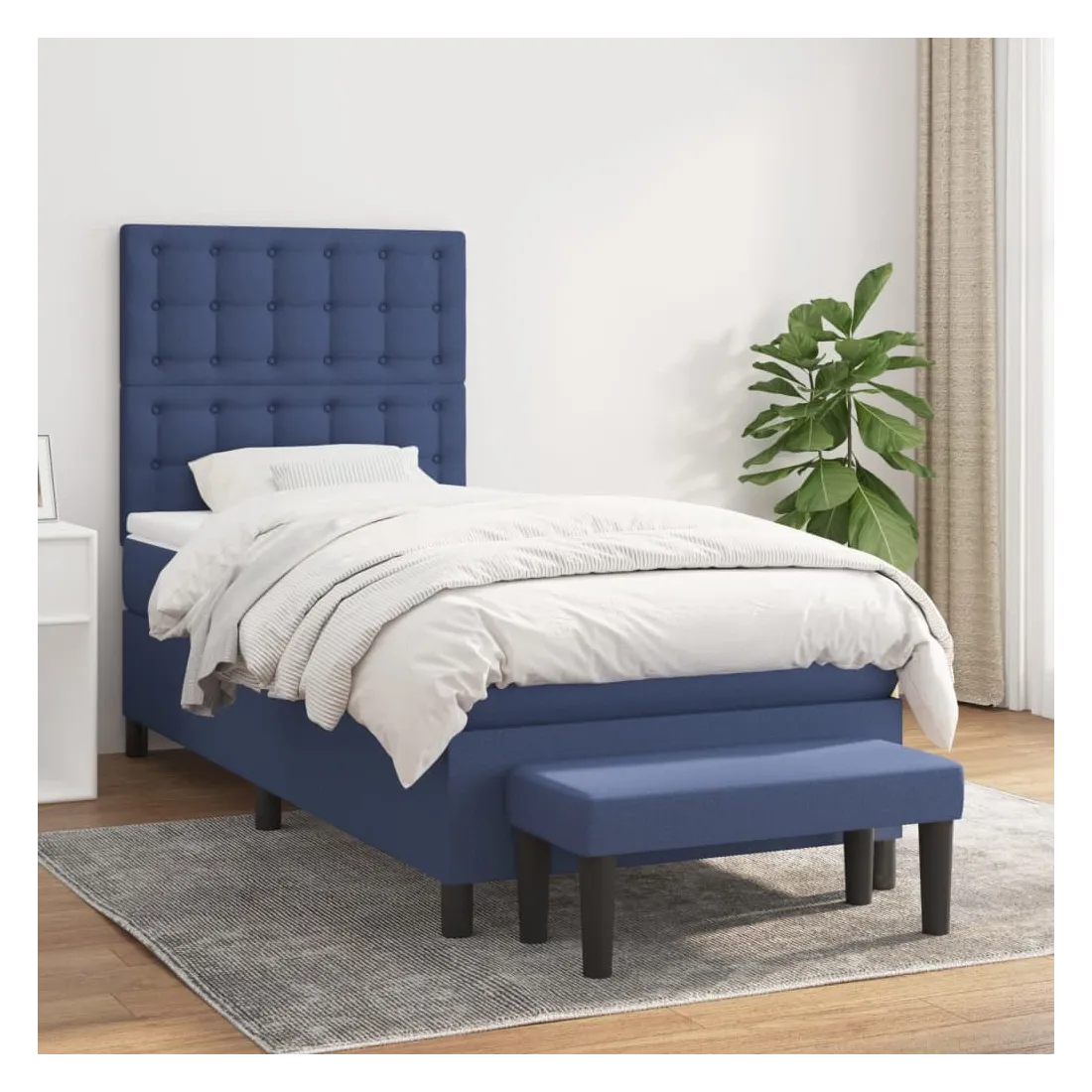 Sommier à lattes de lit avec matelas Bleu 90x190 cm Tissu