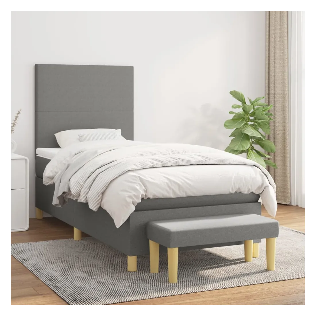 Utilisez ce lit à sommier pour profiter d'une nuit de sommeil réparatrice ! Il vous offre une relaxation maximale et un sommeil agréable. Tissu durable : le tissu présente un aspect simple et épuré, et il est respirant et durable.Tête de lit pratique : la tête de lit est réglable en hauteur selon vos préférences. La tête de lit vous offre un excellent soutien du dos lorsque vous êtes assis dans votre lit pour lire ou regarder la télévision.Matelas à ressorts ensachés : le ressort ensaché individuel intégré est connu pour sa très haute qualité tout en assurant un haut niveau de durabilité et d'adaptabilité. Il peut absorber efficacement le bruit et les chocs causés par les sauts et les rotations.Support moyen-dur : ce matelas de lit offre une stabilité accrue et juste le niveau de fermeté sans sacrifier le confort. Il est donc idéal pour les personnes qui dorment sur le dos ou sur le ventre.Protège-matelas doux pour la peau : le protège-matelas est recouvert d'un tissu résistant et doux pour la peau, ce qui le rend souple et confortable.Banc multifonctionnel : ce banc peut servir de siège supplémentaire dans votre maison. Il peut également être utilisé comme banc de bout de lit. Remarque :Pour des raisons d'hygiène, le matelas ne peut pas être retourné si l'emballage est retiré ou ouvert.Chaque produit est livré avec un manuel de montage dans la boîte pour un montage facile.