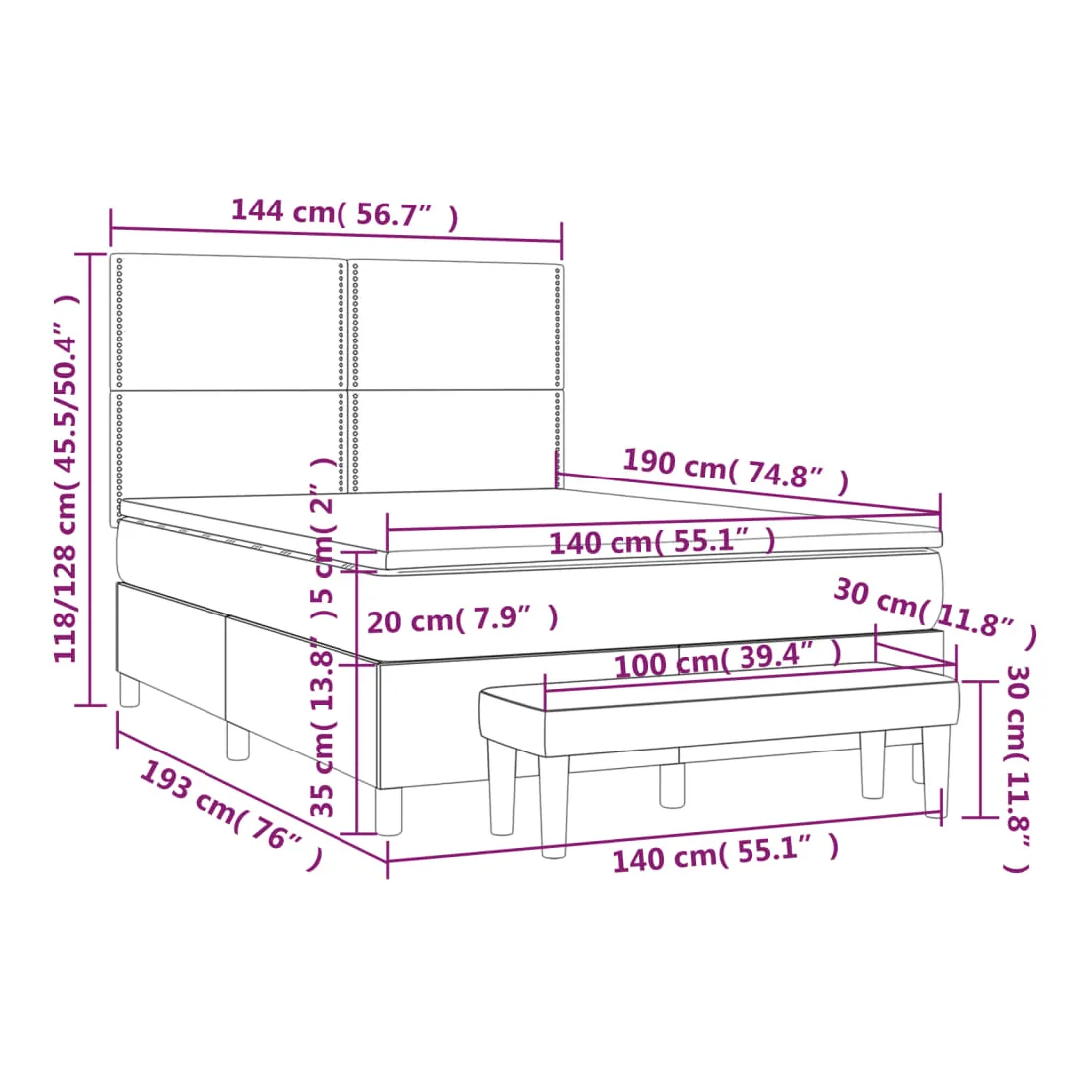 Utilisez ce lit à sommier pour profiter d'une nuit de sommeil réparatrice ! Il vous offre une relaxation maximale et un sommeil agréable. Tissu durable : le tissu présente un aspect simple et épuré, et il est respirant et durable.Tête de lit pratique : la tête de lit est réglable en hauteur selon vos préférences. La tête de lit vous offre un excellent soutien du dos lorsque vous êtes assis dans votre lit pour lire ou regarder la télévision.Matelas à ressorts ensachés : le ressort ensaché individuel intégré est connu pour sa très haute qualité tout en assurant un haut niveau de durabilité et d'adaptabilité. Il peut absorber efficacement le bruit et les chocs causés par les sauts et les rotations.Support moyen-dur : ce matelas de lit offre une stabilité accrue et juste le niveau de fermeté sans sacrifier le confort. Il est donc idéal pour les personnes qui dorment sur le dos ou sur le ventre.Protège-matelas doux pour la peau : le protège-matelas est recouvert d'un tissu résistant et doux pour la peau, ce qui le rend souple et confortable.Banc multifonctionnel : ce banc peut servir de siège supplémentaire dans votre maison. Il peut également être utilisé comme banc de bout de lit. Remarque :Pour des raisons d'hygiène, le matelas ne peut pas être retourné si l'emballage est retiré ou ouvert.Chaque produit est livré avec un manuel de montage dans la boîte pour un montage facile.