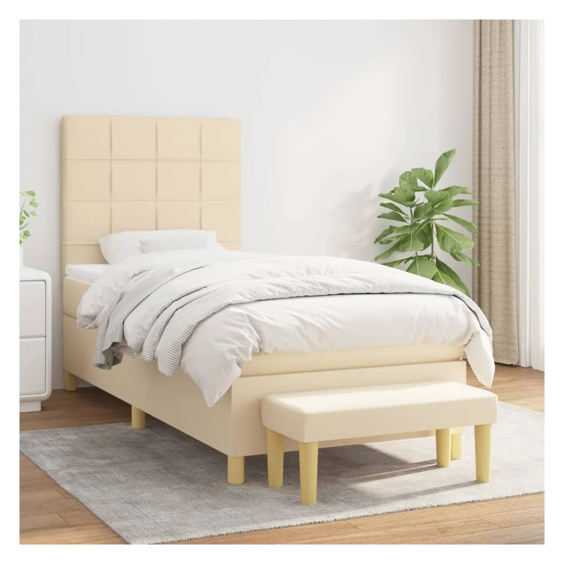 Sommier à lattes de lit avec matelas Crème 90x200 cm Tissu