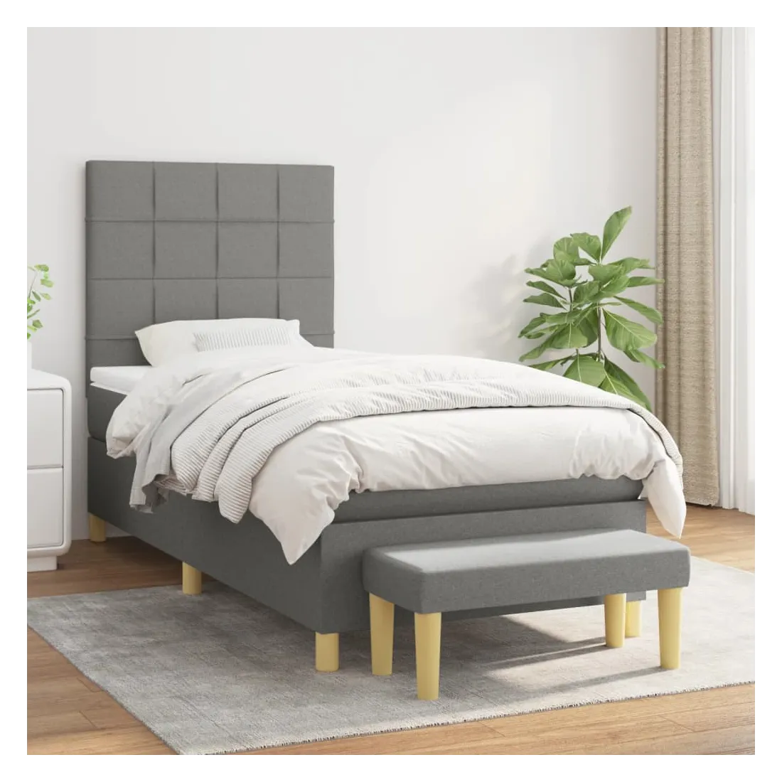 Sommier à lattes de lit avec matelas Gris foncé 100x200cm Tissu