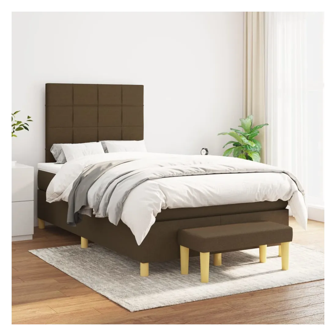 Utilisez ce lit à sommier pour profiter d'une nuit de sommeil réparatrice ! Il vous offre une relaxation maximale et un sommeil agréable. Tissu durable : le tissu présente un aspect simple et épuré, et il est respirant et durable.Tête de lit pratique : la tête de lit est réglable en hauteur selon vos préférences. La tête de lit vous offre un excellent soutien du dos lorsque vous êtes assis dans votre lit pour lire ou regarder la télévision.Matelas à ressorts ensachés : le ressort ensaché individuel intégré est connu pour sa très haute qualité tout en assurant un haut niveau de durabilité et d'adaptabilité. Il peut absorber efficacement le bruit et les chocs causés par les sauts et les rotations.Support moyen-dur : ce matelas de lit offre une stabilité accrue et juste le niveau de fermeté sans sacrifier le confort. Il est donc idéal pour les personnes qui dorment sur le dos ou sur le ventre.Protège-matelas doux pour la peau : le protège-matelas est recouvert d'un tissu résistant et doux pour la peau, ce qui le rend souple et confortable.Banc multifonctionnel : ce banc peut servir de siège supplémentaire dans votre maison. Il peut également être utilisé comme banc de bout de lit. Remarque :Pour des raisons d'hygiène, le matelas ne peut pas être retourné si l'emballage est retiré ou ouvert.Chaque produit est livré avec un manuel de montage dans la boîte pour un montage facile.