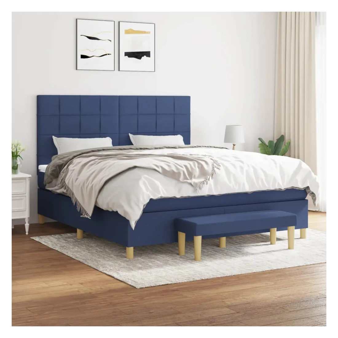 Utilisez ce lit à sommier pour profiter d'une nuit de sommeil réparatrice ! Il vous offre une relaxation maximale et un sommeil agréable. Tissu durable : le tissu présente un aspect simple et épuré, et il est respirant et durable.Tête de lit pratique : la tête de lit est réglable en hauteur selon vos préférences. La tête de lit vous offre un excellent soutien du dos lorsque vous êtes assis dans votre lit pour lire ou regarder la télévision.Matelas à ressorts ensachés : le ressort ensaché individuel intégré est connu pour sa très haute qualité tout en assurant un haut niveau de durabilité et d'adaptabilité. Il peut absorber efficacement le bruit et les chocs causés par les sauts et les rotations.Support moyen-dur : ce matelas de lit offre une stabilité accrue et juste le niveau de fermeté sans sacrifier le confort. Il est donc idéal pour les personnes qui dorment sur le dos ou sur le ventre.Protège-matelas doux pour la peau : le protège-matelas est recouvert d'un tissu résistant et doux pour la peau, ce qui le rend souple et confortable.Banc multifonctionnel : ce banc peut servir de siège supplémentaire dans votre maison. Il peut également être utilisé comme banc de bout de lit. Remarque :Pour des raisons d'hygiène, le matelas ne peut pas être retourné si l'emballage est retiré ou ouvert.Chaque produit est livré avec un manuel de montage dans la boîte pour un montage facile.