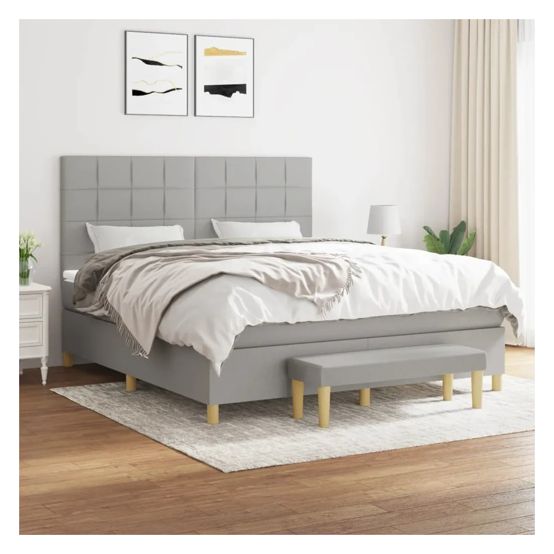 Utilisez ce lit à sommier pour profiter d'une nuit de sommeil réparatrice ! Il vous offre une relaxation maximale et un sommeil agréable. Tissu durable : le tissu présente un aspect simple et épuré, et il est respirant et durable.Tête de lit pratique : la tête de lit est réglable en hauteur selon vos préférences. La tête de lit vous offre un excellent soutien du dos lorsque vous êtes assis dans votre lit pour lire ou regarder la télévision.Matelas à ressorts ensachés : le ressort ensaché individuel intégré est connu pour sa très haute qualité tout en assurant un haut niveau de durabilité et d'adaptabilité. Il peut absorber efficacement le bruit et les chocs causés par les sauts et les rotations.Support moyen-dur : ce matelas de lit offre une stabilité accrue et juste le niveau de fermeté sans sacrifier le confort. Il est donc idéal pour les personnes qui dorment sur le dos ou sur le ventre.Protège-matelas doux pour la peau : le protège-matelas est recouvert d'un tissu résistant et doux pour la peau, ce qui le rend souple et confortable.Banc multifonctionnel : ce banc peut servir de siège supplémentaire dans votre maison. Il peut également être utilisé comme banc de bout de lit. Remarque :Pour des raisons d'hygiène, le matelas ne peut pas être retourné si l'emballage est retiré ou ouvert.Chaque produit est livré avec un manuel de montage dans la boîte pour un montage facile.