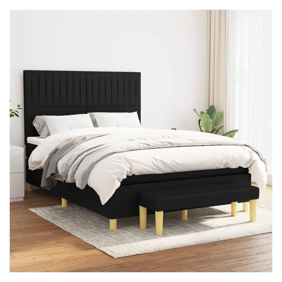 Sommier à lattes de lit avec matelas Noir 140x190 cm Tissu