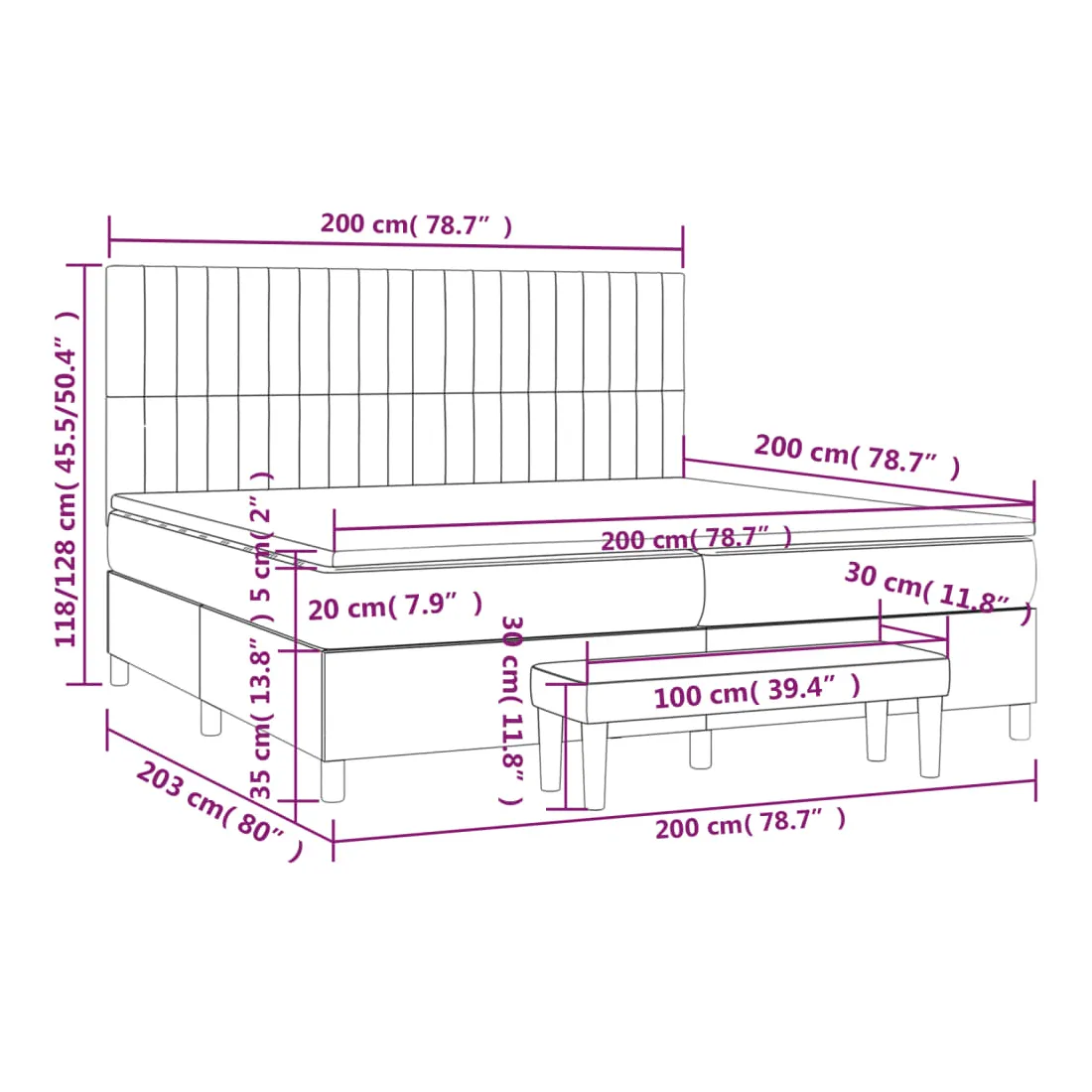 Utilisez ce lit à sommier pour profiter d'une nuit de sommeil réparatrice ! Il vous offre une relaxation maximale et un sommeil agréable. Tissu durable : le tissu présente un aspect simple et épuré, et il est respirant et durable.Tête de lit pratique : la tête de lit est réglable en hauteur selon vos préférences. La tête de lit vous offre un excellent soutien du dos lorsque vous êtes assis dans votre lit pour lire ou regarder la télévision.Matelas à ressorts ensachés : le ressort ensaché individuel intégré est connu pour sa très haute qualité tout en assurant un haut niveau de durabilité et d'adaptabilité. Il peut absorber efficacement le bruit et les chocs causés par les sauts et les rotations.Support moyen-dur : ce matelas de lit offre une stabilité accrue et juste le niveau de fermeté sans sacrifier le confort. Il est donc idéal pour les personnes qui dorment sur le dos ou sur le ventre.Protège-matelas doux pour la peau : le protège-matelas est recouvert d'un tissu résistant et doux pour la peau, ce qui le rend souple et confortable.Banc multifonctionnel : ce banc peut servir de siège supplémentaire dans votre maison. Il peut également être utilisé comme banc de bout de lit. Remarque :Pour des raisons d'hygiène, le matelas ne peut pas être retourné si l'emballage est retiré ou ouvert.Chaque produit est livré avec un manuel de montage dans la boîte pour un montage facile.