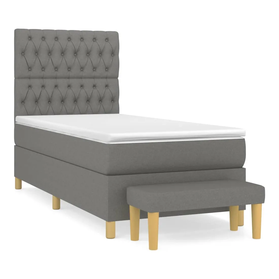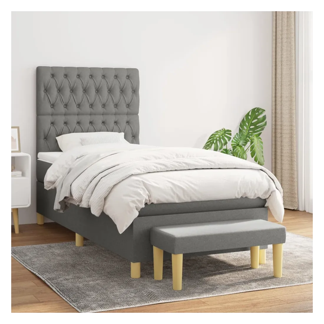 Sommier à lattes de lit avec matelas Gris foncé 90x200 cm Tissu