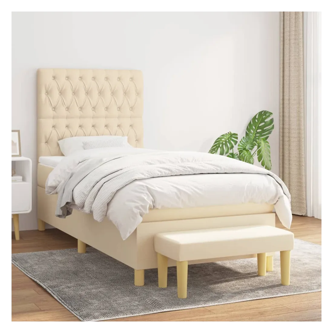 Sommier à lattes de lit avec matelas Crème 90x200 cm Tissu