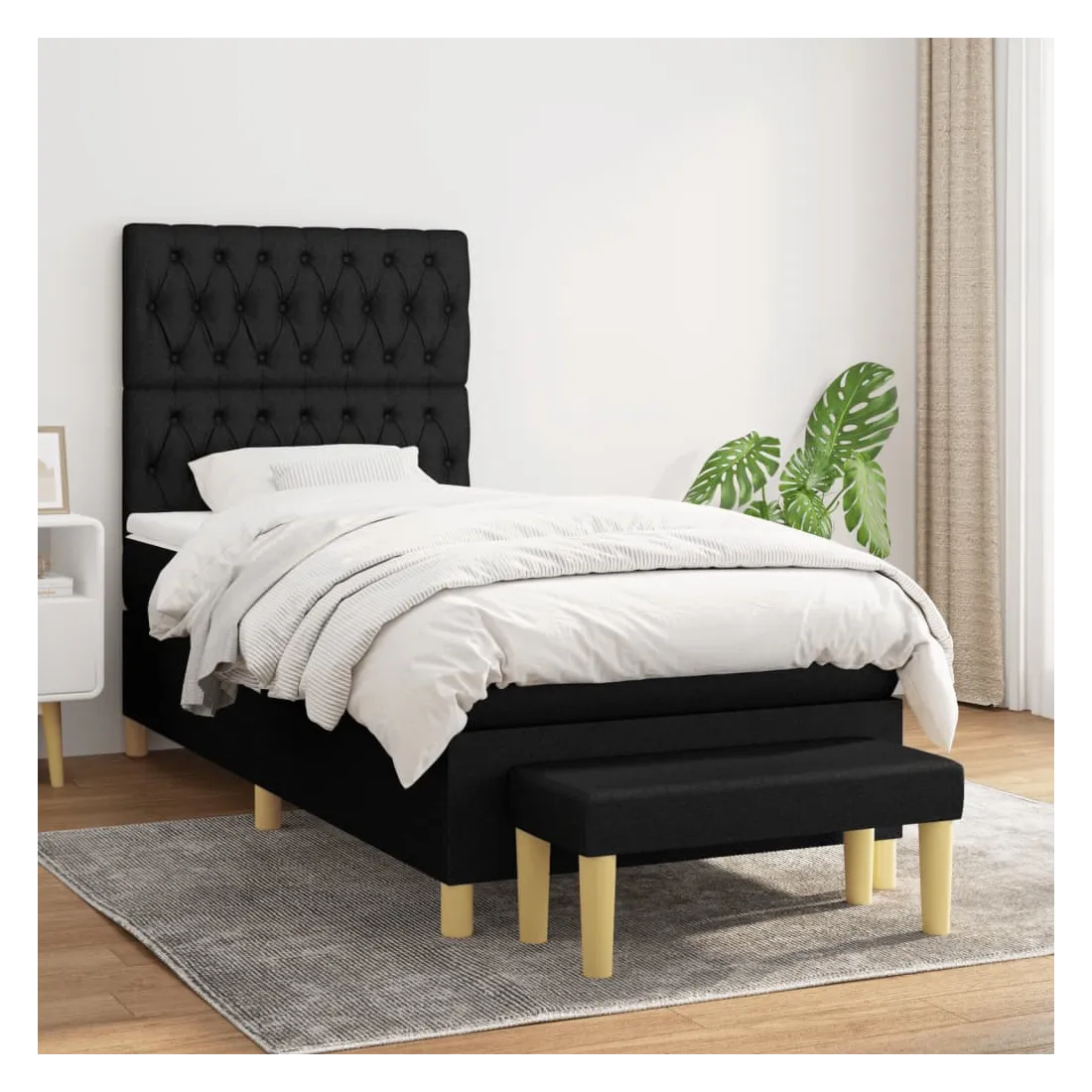 Utilisez ce lit à sommier pour profiter d'une nuit de sommeil réparatrice ! Il vous offre une relaxation maximale et un sommeil agréable. Tissu durable : le tissu présente un aspect simple et épuré, et il est respirant et durable.Tête de lit pratique : la tête de lit est réglable en hauteur selon vos préférences. La tête de lit vous offre un excellent soutien du dos lorsque vous êtes assis dans votre lit pour lire ou regarder la télévision.Matelas à ressorts ensachés : le ressort ensaché individuel intégré est connu pour sa très haute qualité tout en assurant un haut niveau de durabilité et d'adaptabilité. Il peut absorber efficacement le bruit et les chocs causés par les sauts et les rotations.Support moyen-dur : ce matelas de lit offre une stabilité accrue et juste le niveau de fermeté sans sacrifier le confort. Il est donc idéal pour les personnes qui dorment sur le dos ou sur le ventre.Protège-matelas doux pour la peau : le protège-matelas est recouvert d'un tissu résistant et doux pour la peau, ce qui le rend souple et confortable.Banc multifonctionnel : ce banc peut servir de siège supplémentaire dans votre maison. Il peut également être utilisé comme banc de bout de lit. Remarque :Pour des raisons d'hygiène, le matelas ne peut pas être retourné si l'emballage est retiré ou ouvert.Chaque produit est livré avec un manuel de montage dans la boîte pour un montage facile.