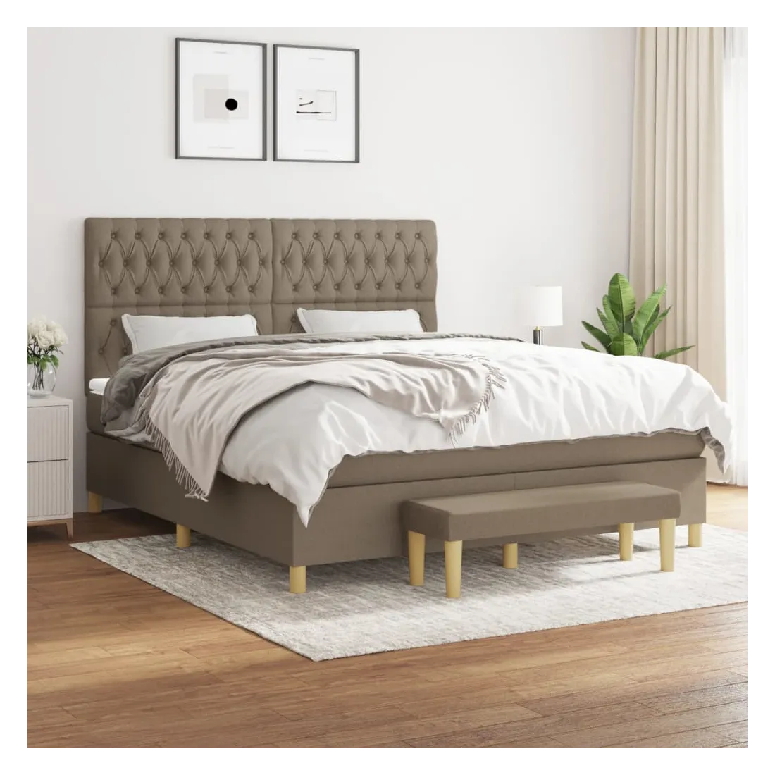 Utilisez ce lit à sommier pour profiter d'une nuit de sommeil réparatrice ! Il vous offre une relaxation maximale et un sommeil agréable. Tissu durable : le tissu présente un aspect simple et épuré, et il est respirant et durable.Tête de lit pratique : la tête de lit est réglable en hauteur selon vos préférences. La tête de lit vous offre un excellent soutien du dos lorsque vous êtes assis dans votre lit pour lire ou regarder la télévision.Matelas à ressorts ensachés : le ressort ensaché individuel intégré est connu pour sa très haute qualité tout en assurant un haut niveau de durabilité et d'adaptabilité. Il peut absorber efficacement le bruit et les chocs causés par les sauts et les rotations.Support moyen-dur : ce matelas de lit offre une stabilité accrue et juste le niveau de fermeté sans sacrifier le confort. Il est donc idéal pour les personnes qui dorment sur le dos ou sur le ventre.Protège-matelas doux pour la peau : le protège-matelas est recouvert d'un tissu résistant et doux pour la peau, ce qui le rend souple et confortable.Banc multifonctionnel : ce banc peut servir de siège supplémentaire dans votre maison. Il peut également être utilisé comme banc de bout de lit. Remarque :Pour des raisons d'hygiène, le matelas ne peut pas être retourné si l'emballage est retiré ou ouvert.Chaque produit est livré avec un manuel de montage dans la boîte pour un montage facile.