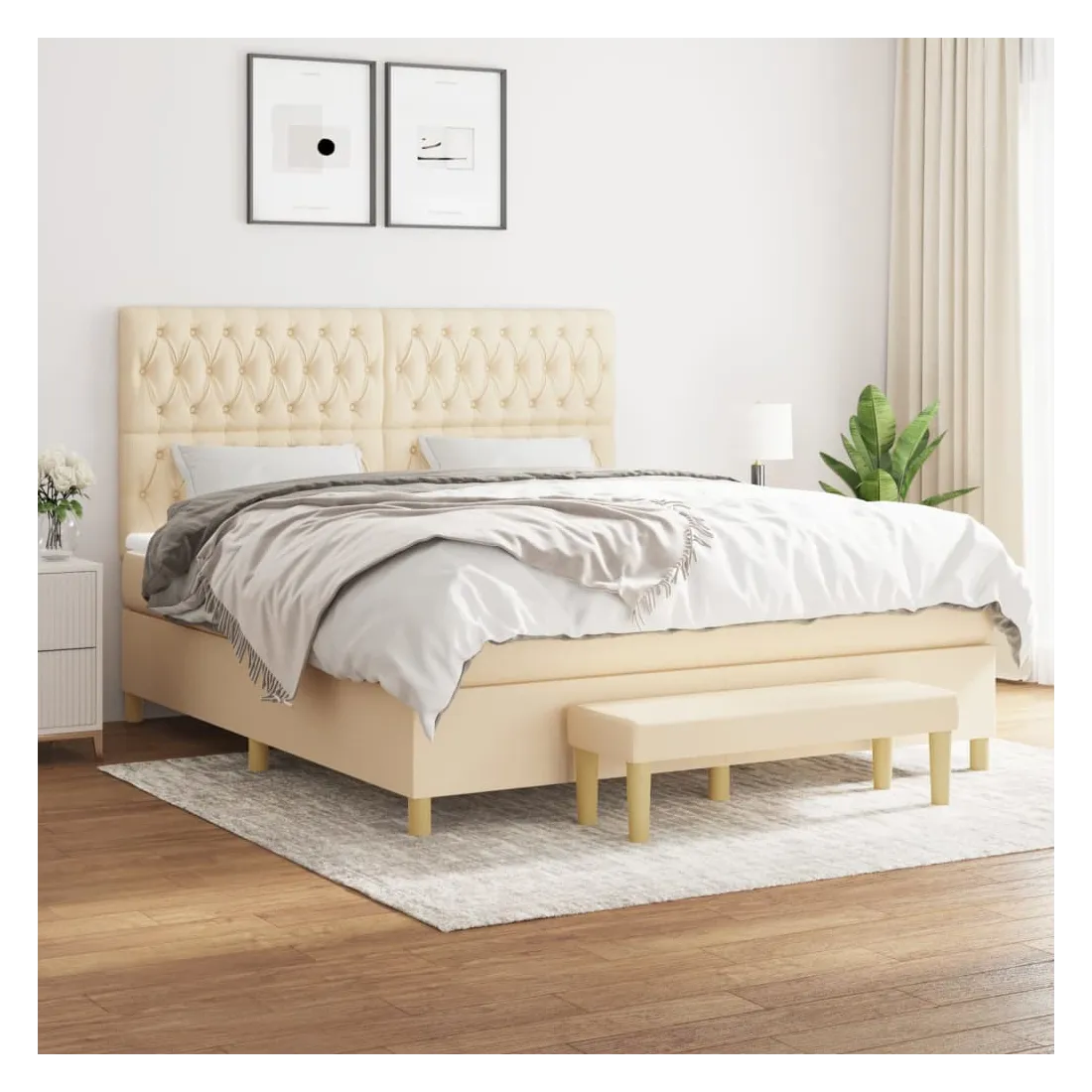 Utilisez ce lit à sommier pour profiter d'une nuit de sommeil réparatrice ! Il vous offre une relaxation maximale et un sommeil agréable. Tissu durable : le tissu présente un aspect simple et épuré, et il est respirant et durable.Tête de lit pratique : la tête de lit est réglable en hauteur selon vos préférences. La tête de lit vous offre un excellent soutien du dos lorsque vous êtes assis dans votre lit pour lire ou regarder la télévision.Matelas à ressorts ensachés : le ressort ensaché individuel intégré est connu pour sa très haute qualité tout en assurant un haut niveau de durabilité et d'adaptabilité. Il peut absorber efficacement le bruit et les chocs causés par les sauts et les rotations.Support moyen-dur : ce matelas de lit offre une stabilité accrue et juste le niveau de fermeté sans sacrifier le confort. Il est donc idéal pour les personnes qui dorment sur le dos ou sur le ventre.Protège-matelas doux pour la peau : le protège-matelas est recouvert d'un tissu résistant et doux pour la peau, ce qui le rend souple et confortable.Banc multifonctionnel : ce banc peut servir de siège supplémentaire dans votre maison. Il peut également être utilisé comme banc de bout de lit. Remarque :Pour des raisons d'hygiène, le matelas ne peut pas être retourné si l'emballage est retiré ou ouvert.Chaque produit est livré avec un manuel de montage dans la boîte pour un montage facile.