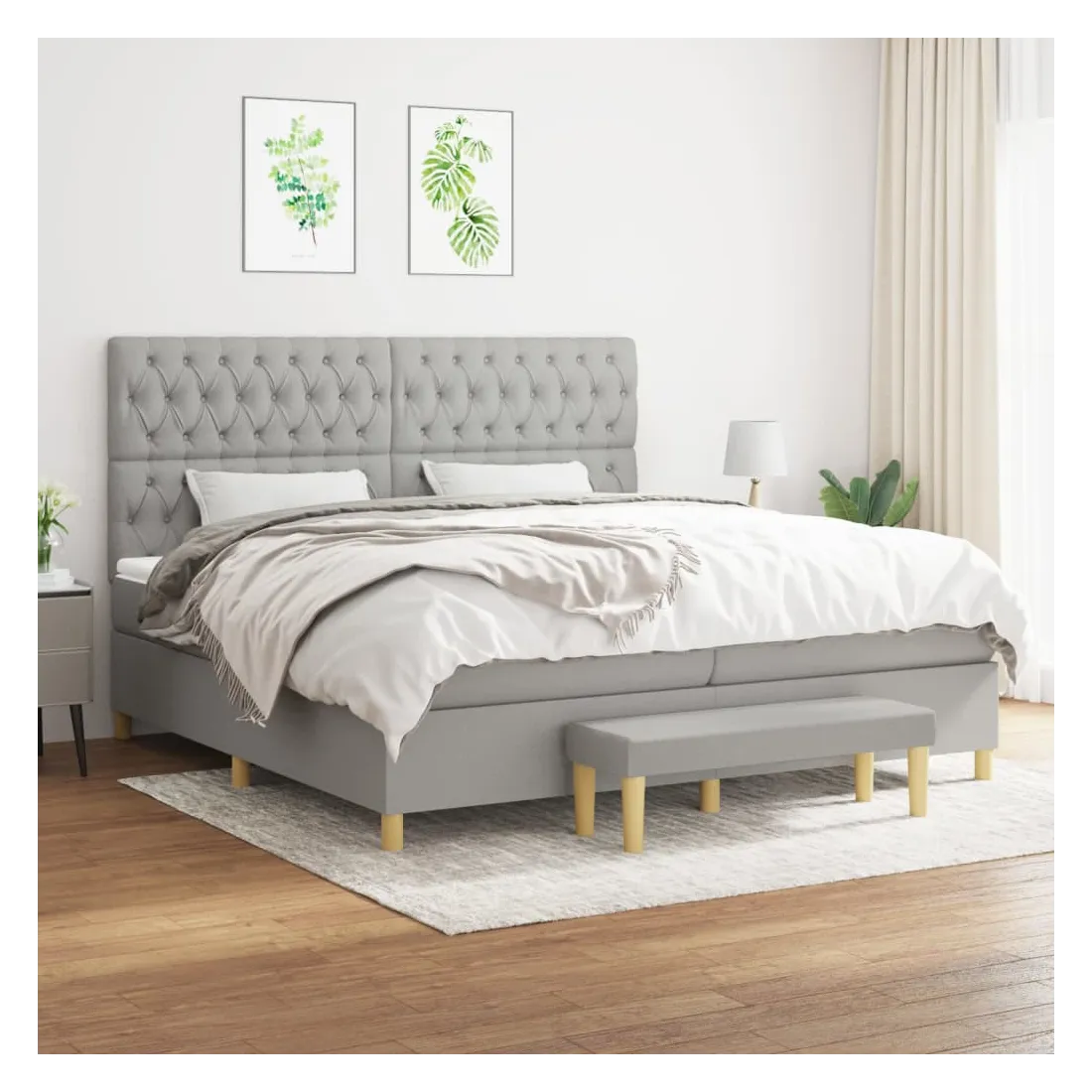 Utilisez ce lit à sommier pour profiter d'une nuit de sommeil réparatrice ! Il vous offre une relaxation maximale et un sommeil agréable. Tissu durable : le tissu présente un aspect simple et épuré, et il est respirant et durable.Tête de lit pratique : la tête de lit est réglable en hauteur selon vos préférences. La tête de lit vous offre un excellent soutien du dos lorsque vous êtes assis dans votre lit pour lire ou regarder la télévision.Matelas à ressorts ensachés : le ressort ensaché individuel intégré est connu pour sa très haute qualité tout en assurant un haut niveau de durabilité et d'adaptabilité. Il peut absorber efficacement le bruit et les chocs causés par les sauts et les rotations.Support moyen-dur : ce matelas de lit offre une stabilité accrue et juste le niveau de fermeté sans sacrifier le confort. Il est donc idéal pour les personnes qui dorment sur le dos ou sur le ventre.Protège-matelas doux pour la peau : le protège-matelas est recouvert d'un tissu résistant et doux pour la peau, ce qui le rend souple et confortable.Banc multifonctionnel : ce banc peut servir de siège supplémentaire dans votre maison. Il peut également être utilisé comme banc de bout de lit. Remarque :Pour des raisons d'hygiène, le matelas ne peut pas être retourné si l'emballage est retiré ou ouvert.Chaque produit est livré avec un manuel de montage dans la boîte pour un montage facile.