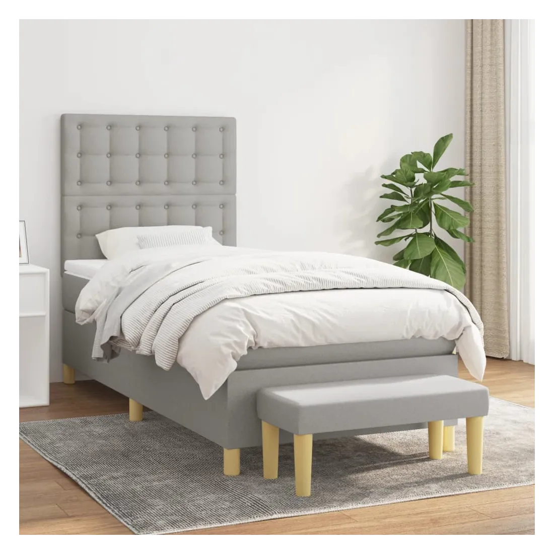 Utilisez ce lit à sommier pour profiter d'une nuit de sommeil réparatrice ! Il vous offre une relaxation maximale et un sommeil agréable. Tissu durable : le tissu présente un aspect simple et épuré, et il est respirant et durable.Tête de lit pratique : la tête de lit est réglable en hauteur selon vos préférences. La tête de lit vous offre un excellent soutien du dos lorsque vous êtes assis dans votre lit pour lire ou regarder la télévision.Matelas à ressorts ensachés : le ressort ensaché individuel intégré est connu pour sa très haute qualité tout en assurant un haut niveau de durabilité et d'adaptabilité. Il peut absorber efficacement le bruit et les chocs causés par les sauts et les rotations.Support moyen-dur : ce matelas de lit offre une stabilité accrue et juste le niveau de fermeté sans sacrifier le confort. Il est donc idéal pour les personnes qui dorment sur le dos ou sur le ventre.Protège-matelas doux pour la peau : le protège-matelas est recouvert d'un tissu résistant et doux pour la peau, ce qui le rend souple et confortable.Banc multifonctionnel : ce banc peut servir de siège supplémentaire dans votre maison. Il peut également être utilisé comme banc de bout de lit. Remarque :Pour des raisons d'hygiène, le matelas ne peut pas être retourné si l'emballage est retiré ou ouvert.Chaque produit est livré avec un manuel de montage dans la boîte pour un montage facile.
