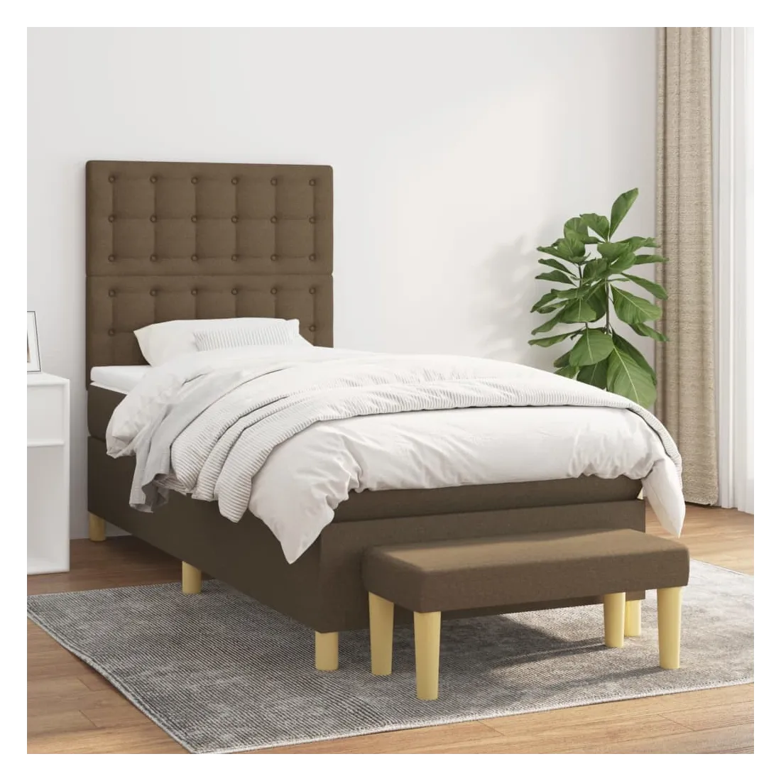 Utilisez ce lit à sommier pour profiter d'une nuit de sommeil réparatrice ! Il vous offre une relaxation maximale et un sommeil agréable. Tissu durable : le tissu présente un aspect simple et épuré, et il est respirant et durable.Tête de lit pratique : la tête de lit est réglable en hauteur selon vos préférences. La tête de lit vous offre un excellent soutien du dos lorsque vous êtes assis dans votre lit pour lire ou regarder la télévision.Matelas à ressorts ensachés : le ressort ensaché individuel intégré est connu pour sa très haute qualité tout en assurant un haut niveau de durabilité et d'adaptabilité. Il peut absorber efficacement le bruit et les chocs causés par les sauts et les rotations.Support moyen-dur : ce matelas de lit offre une stabilité accrue et juste le niveau de fermeté sans sacrifier le confort. Il est donc idéal pour les personnes qui dorment sur le dos ou sur le ventre.Protège-matelas doux pour la peau : le protège-matelas est recouvert d'un tissu résistant et doux pour la peau, ce qui le rend souple et confortable.Banc multifonctionnel : ce banc peut servir de siège supplémentaire dans votre maison. Il peut également être utilisé comme banc de bout de lit. Remarque :Pour des raisons d'hygiène, le matelas ne peut pas être retourné si l'emballage est retiré ou ouvert.Chaque produit est livré avec un manuel de montage dans la boîte pour un montage facile.