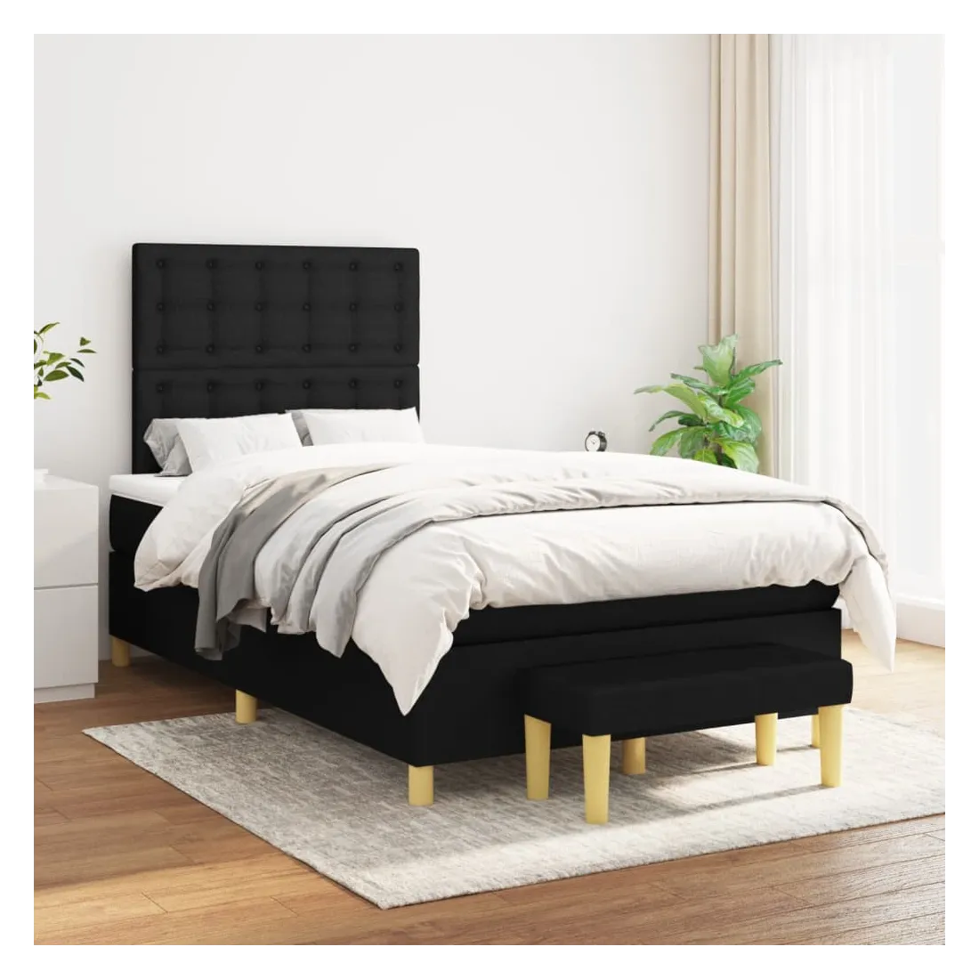 Utilisez ce lit à sommier pour profiter d'une nuit de sommeil réparatrice ! Il vous offre une relaxation maximale et un sommeil agréable. Tissu durable : le tissu présente un aspect simple et épuré, et il est respirant et durable.Tête de lit pratique : la tête de lit est réglable en hauteur selon vos préférences. La tête de lit vous offre un excellent soutien du dos lorsque vous êtes assis dans votre lit pour lire ou regarder la télévision.Matelas à ressorts ensachés : le ressort ensaché individuel intégré est connu pour sa très haute qualité tout en assurant un haut niveau de durabilité et d'adaptabilité. Il peut absorber efficacement le bruit et les chocs causés par les sauts et les rotations.Support moyen-dur : ce matelas de lit offre une stabilité accrue et juste le niveau de fermeté sans sacrifier le confort. Il est donc idéal pour les personnes qui dorment sur le dos ou sur le ventre.Protège-matelas doux pour la peau : le protège-matelas est recouvert d'un tissu résistant et doux pour la peau, ce qui le rend souple et confortable.Banc multifonctionnel : ce banc peut servir de siège supplémentaire dans votre maison. Il peut également être utilisé comme banc de bout de lit. Remarque :Pour des raisons d'hygiène, le matelas ne peut pas être retourné si l'emballage est retiré ou ouvert.Chaque produit est livré avec un manuel de montage dans la boîte pour un montage facile.
