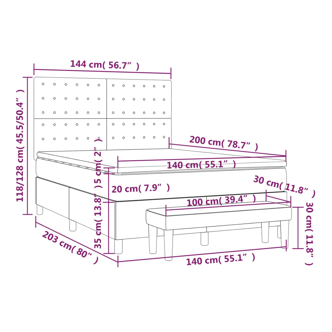 Utilisez ce lit à sommier pour profiter d'une nuit de sommeil réparatrice ! Il vous offre une relaxation maximale et un sommeil agréable. Tissu durable : le tissu présente un aspect simple et épuré, et il est respirant et durable.Tête de lit pratique : la tête de lit est réglable en hauteur selon vos préférences. La tête de lit vous offre un excellent soutien du dos lorsque vous êtes assis dans votre lit pour lire ou regarder la télévision.Matelas à ressorts ensachés : le ressort ensaché individuel intégré est connu pour sa très haute qualité tout en assurant un haut niveau de durabilité et d'adaptabilité. Il peut absorber efficacement le bruit et les chocs causés par les sauts et les rotations.Support moyen-dur : ce matelas de lit offre une stabilité accrue et juste le niveau de fermeté sans sacrifier le confort. Il est donc idéal pour les personnes qui dorment sur le dos ou sur le ventre.Protège-matelas doux pour la peau : le protège-matelas est recouvert d'un tissu résistant et doux pour la peau, ce qui le rend souple et confortable.Banc multifonctionnel : ce banc peut servir de siège supplémentaire dans votre maison. Il peut également être utilisé comme banc de bout de lit. Remarque :Pour des raisons d'hygiène, le matelas ne peut pas être retourné si l'emballage est retiré ou ouvert.Chaque produit est livré avec un manuel de montage dans la boîte pour un montage facile.