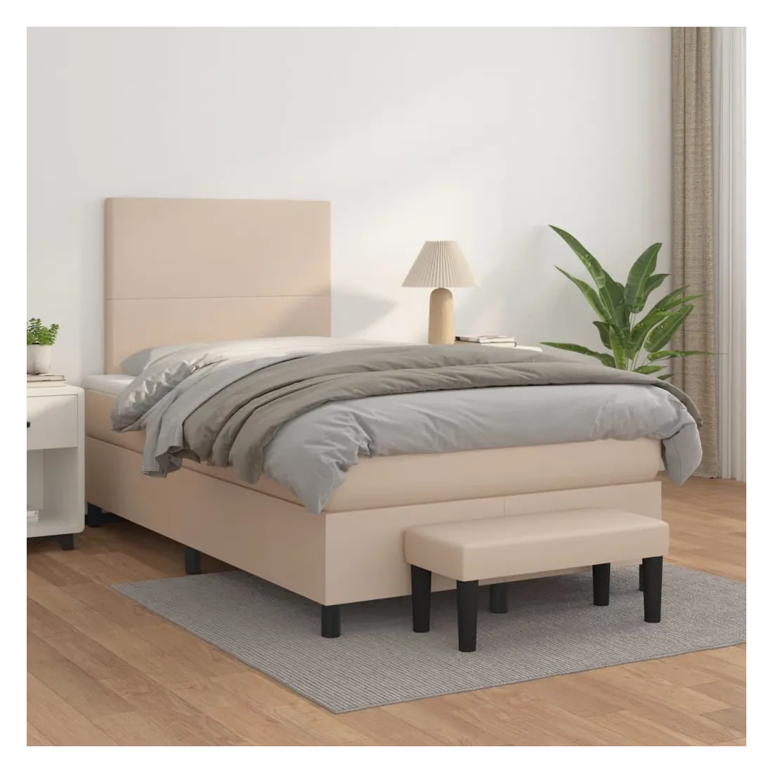 Utilisez ce lit à sommier pour profiter d'une nuit de sommeil réparatrice ! Il vous offre une relaxation maximale et un sommeil agréable. Similicuir durable : le similicuir de qualité supérieure est un matériau très durable. Il est résistant aux taches, ce qui le rend facile à nettoyer avec un chiffon humide. La surface lisse donne également un aspect luxueux et la beauté du cuir véritable.Tête de lit pratique : la tête de lit est réglable en hauteur selon vos préférences. La tête de lit vous offre un excellent soutien du dos lorsque vous êtes assis dans votre lit pour lire ou regarder la télévision.Matelas à ressorts ensachés : le ressort ensaché individuel intégré est connu pour sa très haute qualité tout en assurant un haut niveau de durabilité et d'adaptabilité. Il peut absorber efficacement le bruit et les chocs causés par les sauts et les rotations.Support moyen-dur : ce matelas de lit offre une stabilité accrue et juste le niveau de fermeté sans sacrifier le confort. Il est donc idéal pour les personnes qui dorment sur le dos ou sur le ventre.Protège-matelas doux pour la peau : le protège-matelas est recouvert d'un tissu résistant et doux pour la peau, ce qui le rend souple et confortable.Banc multifonctionnel : ce banc peut servir de siège supplémentaire dans votre maison. Il peut également être utilisé comme banc de bout de lit. Remarque :Pour des raisons d'hygiène, le matelas ne peut pas être retourné si l'emballage est retiré ou ouvert.Chaque produit est livré avec un manuel de montage dans la boîte pour un montage facile.